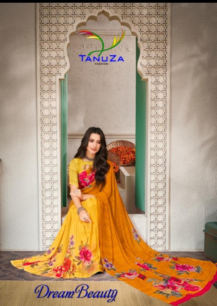 TANUZA FASHION Launching Dream Beauty Catalog: DREAM BEAUTY Fabric : Georgette With Digital Print Pcs : 11 _ Digital Printed Sarees_ Set To Set GST 5 Percent Extra Delivery 2 days |