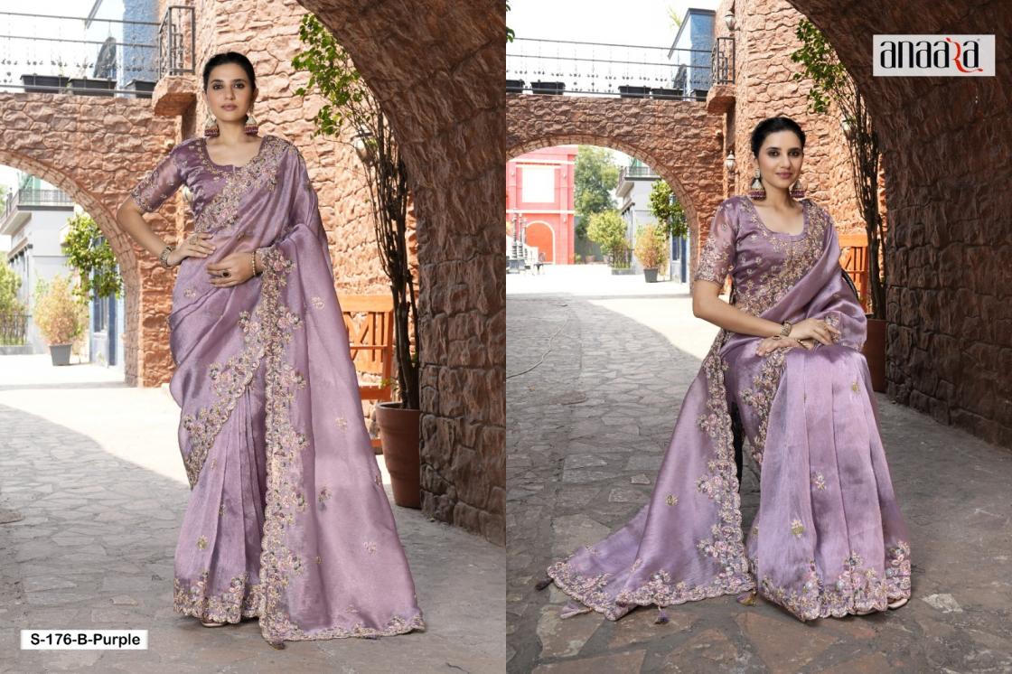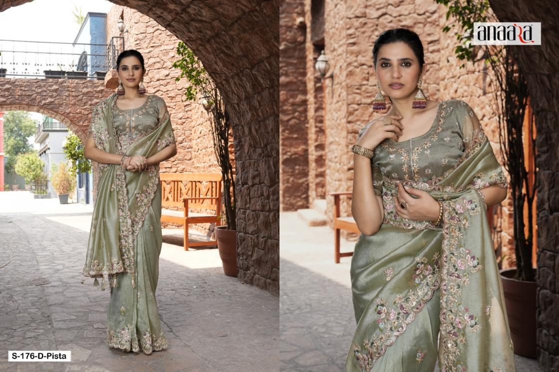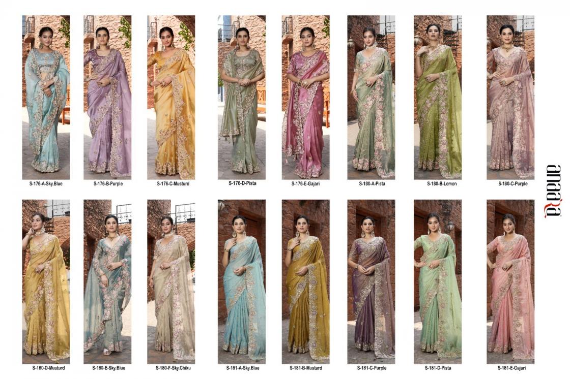This pure Fabric saree drapes elegantly, creating a flowing silhouette that accentuates the beauty of the wearer. With its regal presence and intricate craftsmanship, this saree is sure to turn heads and steal hearts. Brand : Tathastu Catalog Name : 176-180-181 Colours Saree Fabric : Pure Fancy Fabric With Embroidery, Stone, Pearl, Hand Work On Border Saree Blouse Fabric : Fancy With Heavy Work Rate : List Attached +5% Gst Occasion : Wedding Wear, Ethinic Wear, Party Wear |