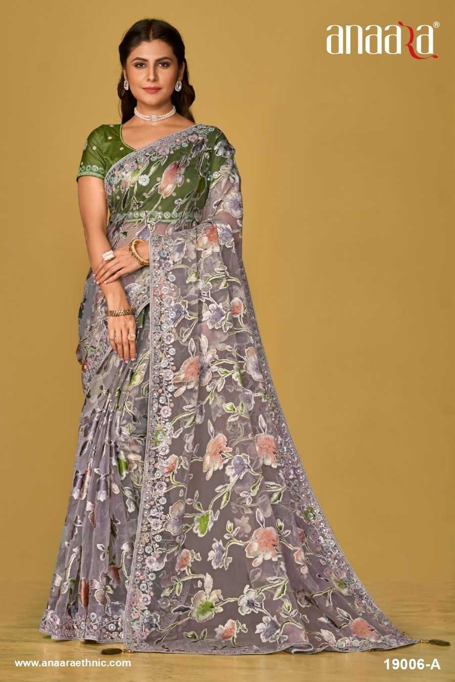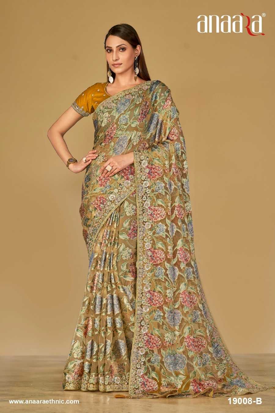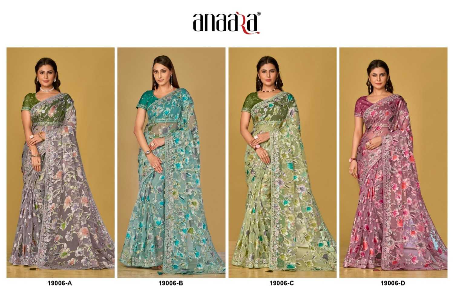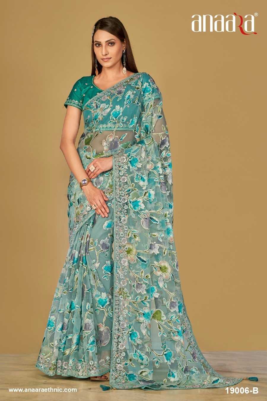 tathastu anaara 19000 hit colours 19006-19008 organza brasso with beautiful printed saree