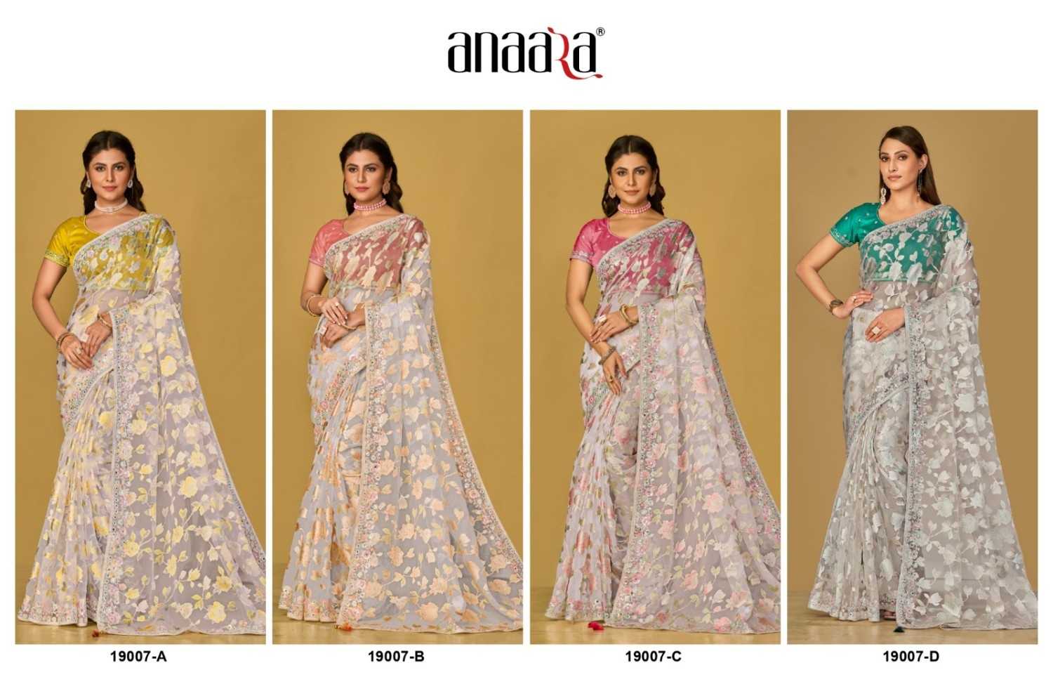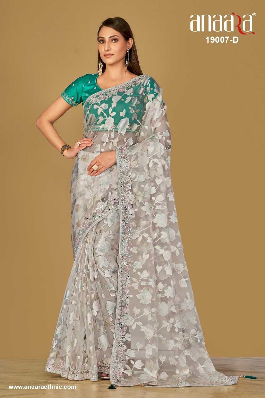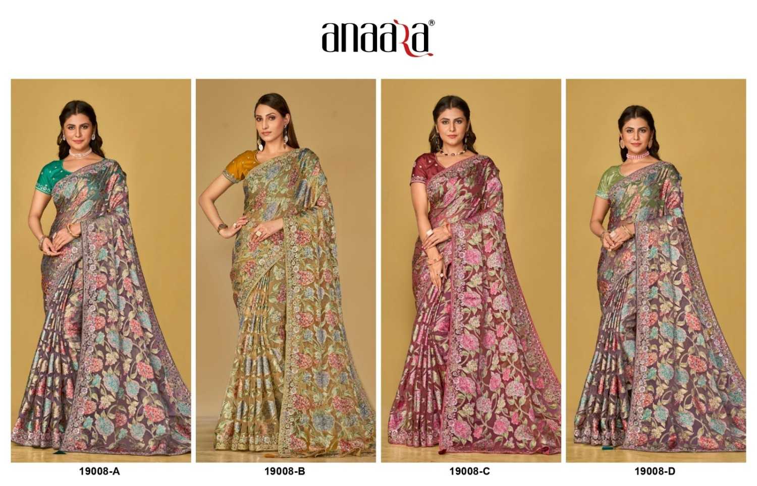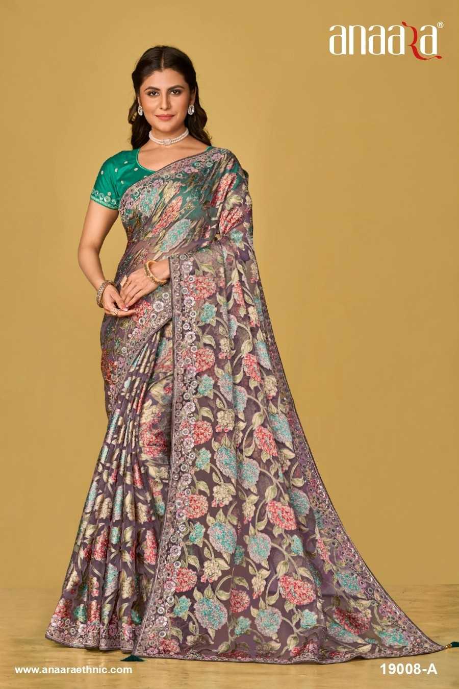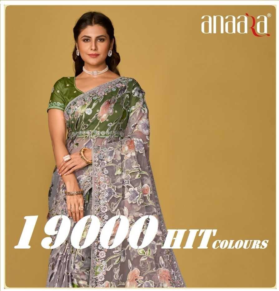 tathastu anaara 19000 hit colours 19006-19008 organza brasso with beautiful printed saree