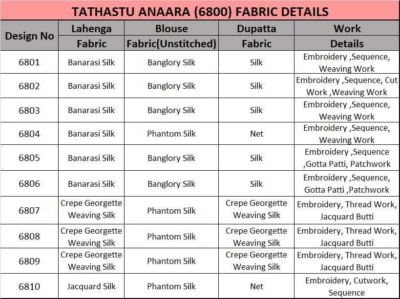tathastu anaara 6800 trendy 6801- 6810 series banarasi silk stylish chaniya choli with dupatta