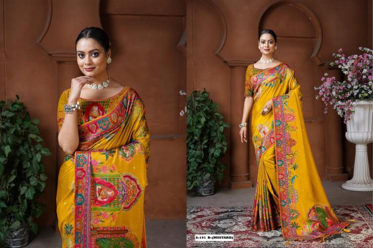Embrace the beauty of tradition With This Dola Silk Position Work Saree For those who appreciate the art of weaving tradition into elegance. Brand Name : Tathastu Catalogue Name: Anaara Postion Dola Silk Series : 191A To 191D Saree Fabric : Dola Silk With Beautifully Position Weaving Pallu & Border Saree With Attached Tussles On Pallu Blouse : Dola Silk Fabric With Position Work Price : 3295/- +5%GST Occasion : Wedding Wear, Festive Wear |