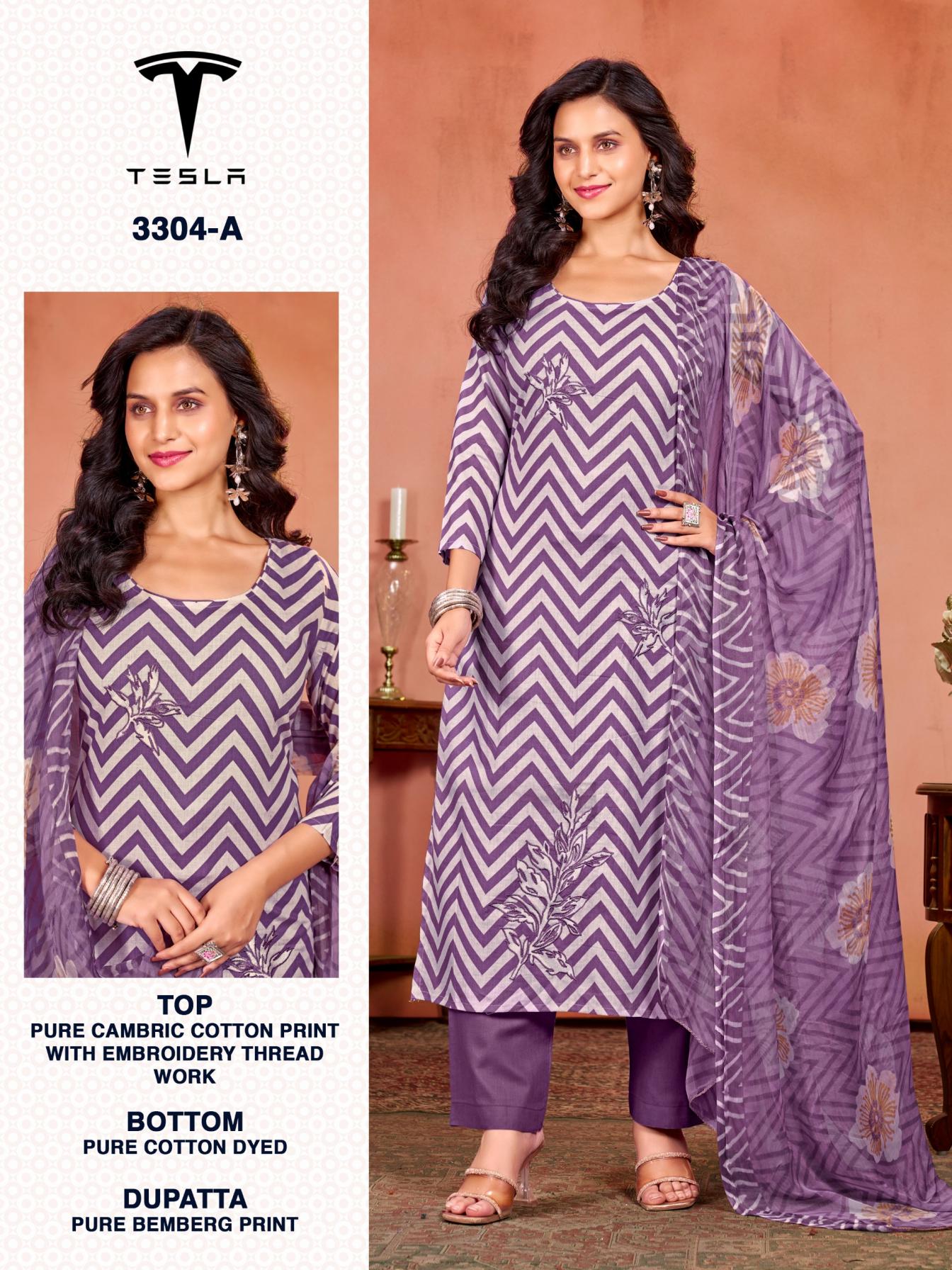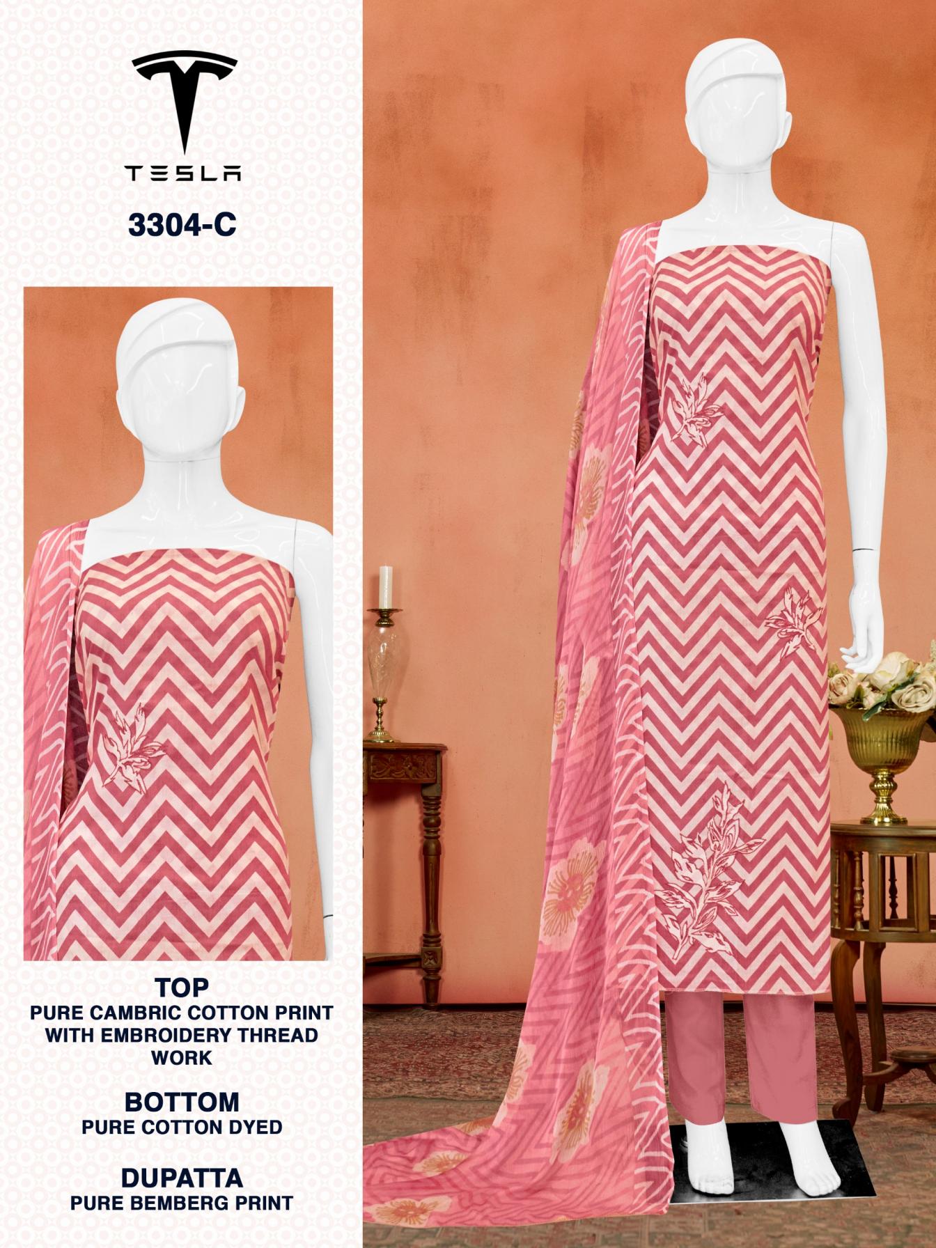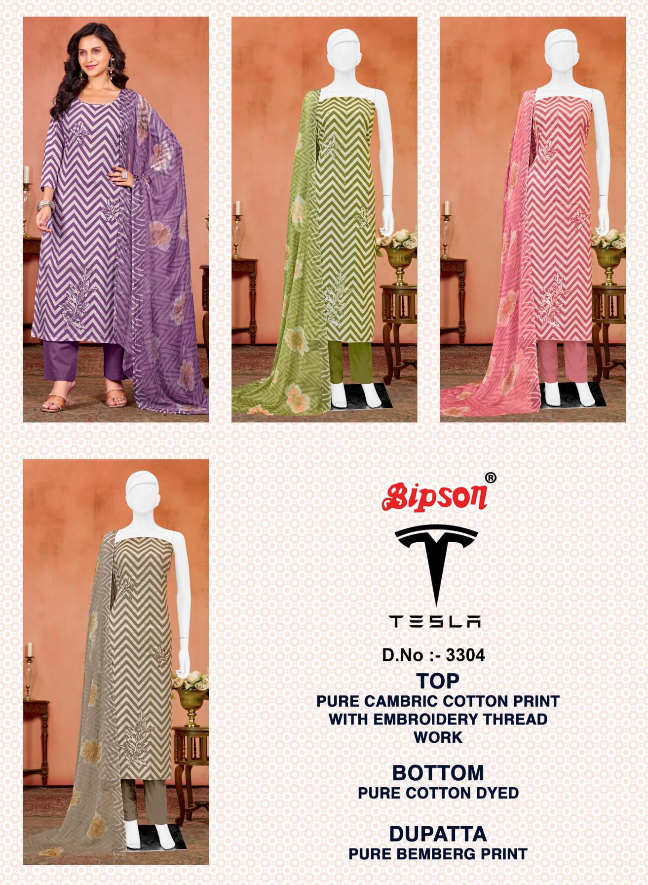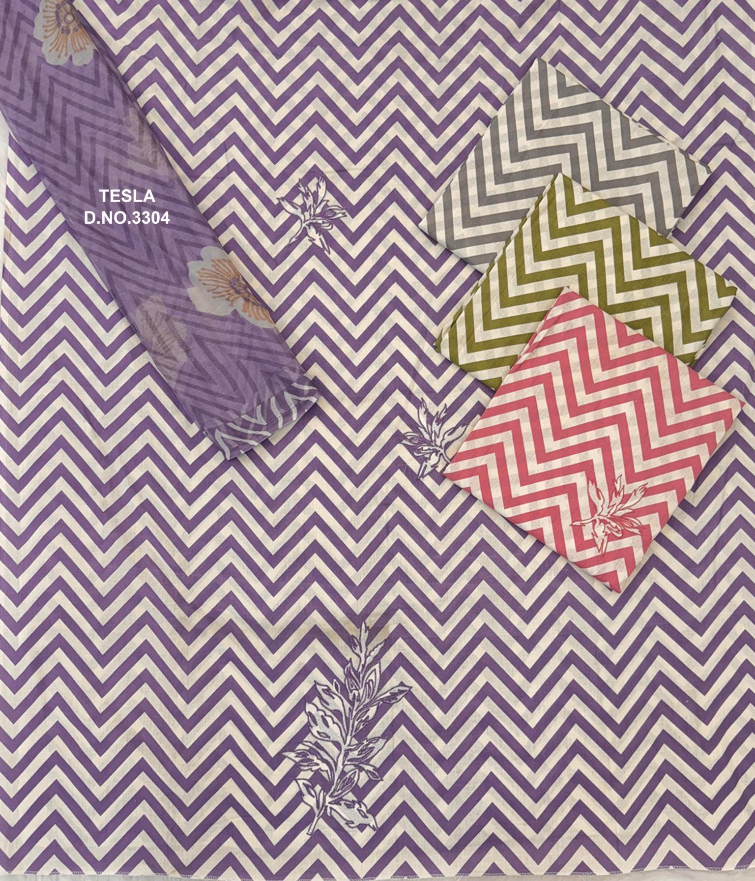 tesla 3304 by bipson print unstitched 3pcs trendy dress set