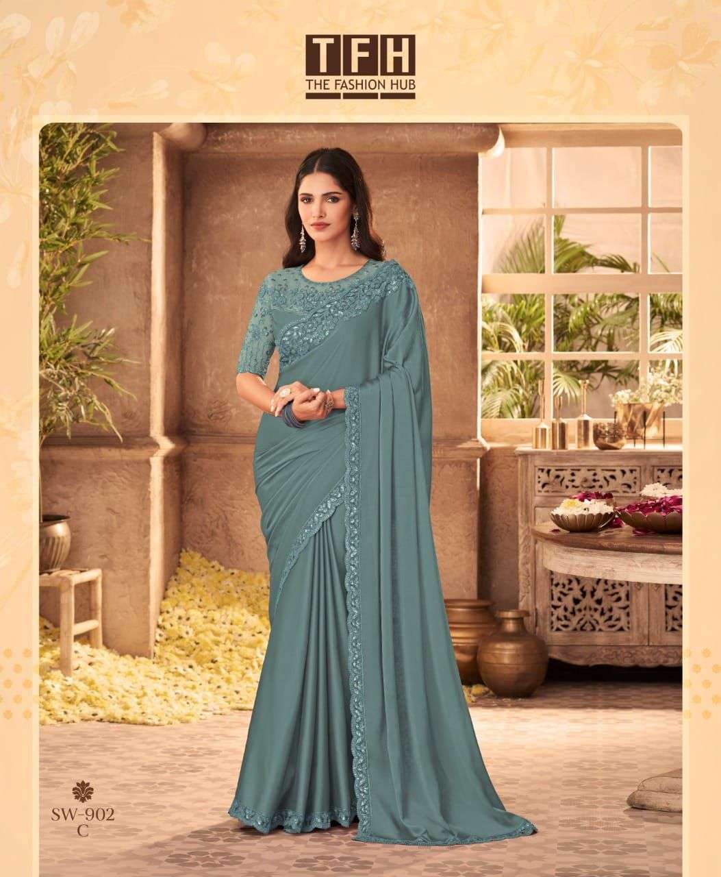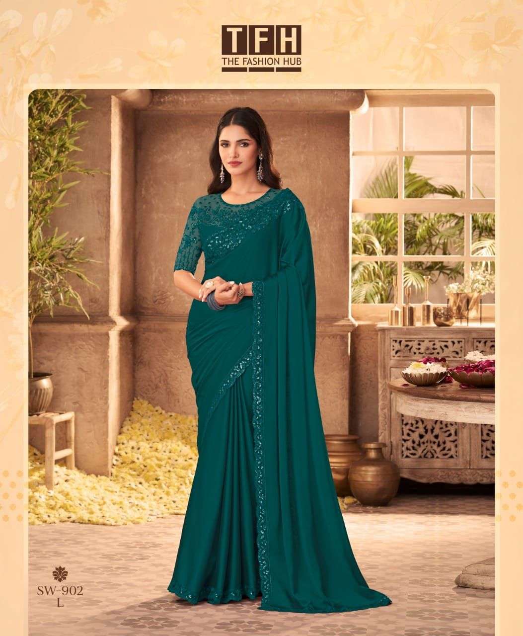 tfh sandalwood 902 colours silk designer fancy wedding saree