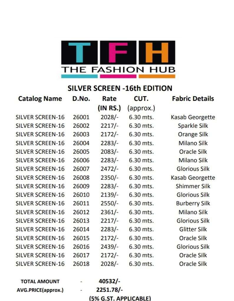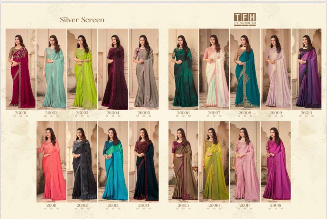 tfh silver screen vol 16 26001-26018 series heavy work indian fancy sarees for women 2022