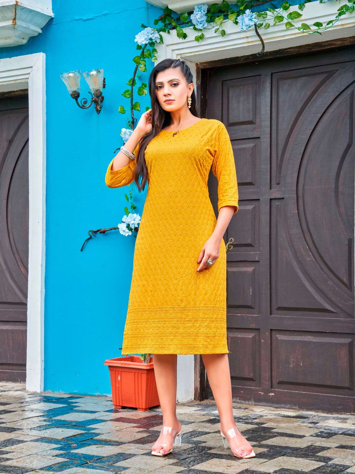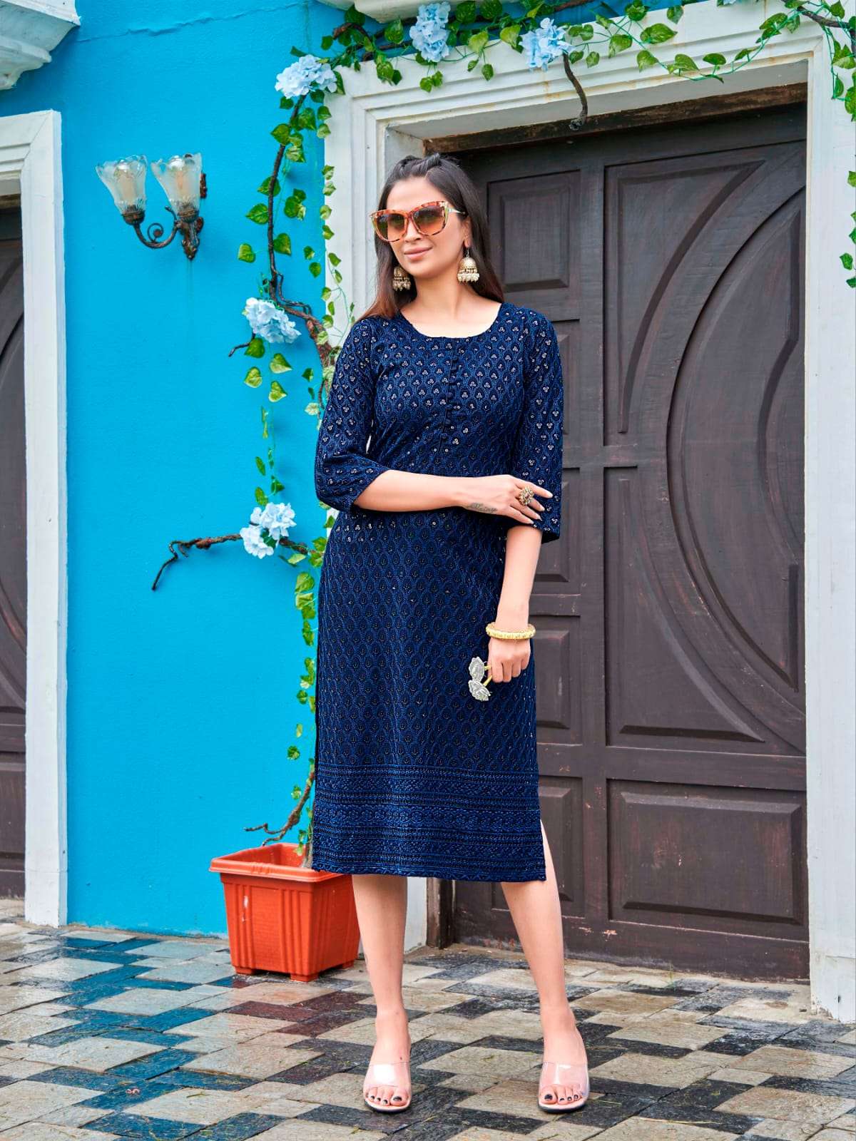 tips & tops olivia vol 3 Luckhnovi Chikan Kurtis All over design