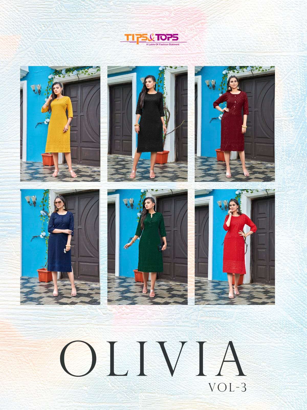 TIPS & TOPS Catalouge Name : 💃 OLIVIA VOL 03 💃 Luckhnovi Chikan Kurtis All over Fabrics : Heavy Reyon Chikan Rate : 525 + GST 5% |