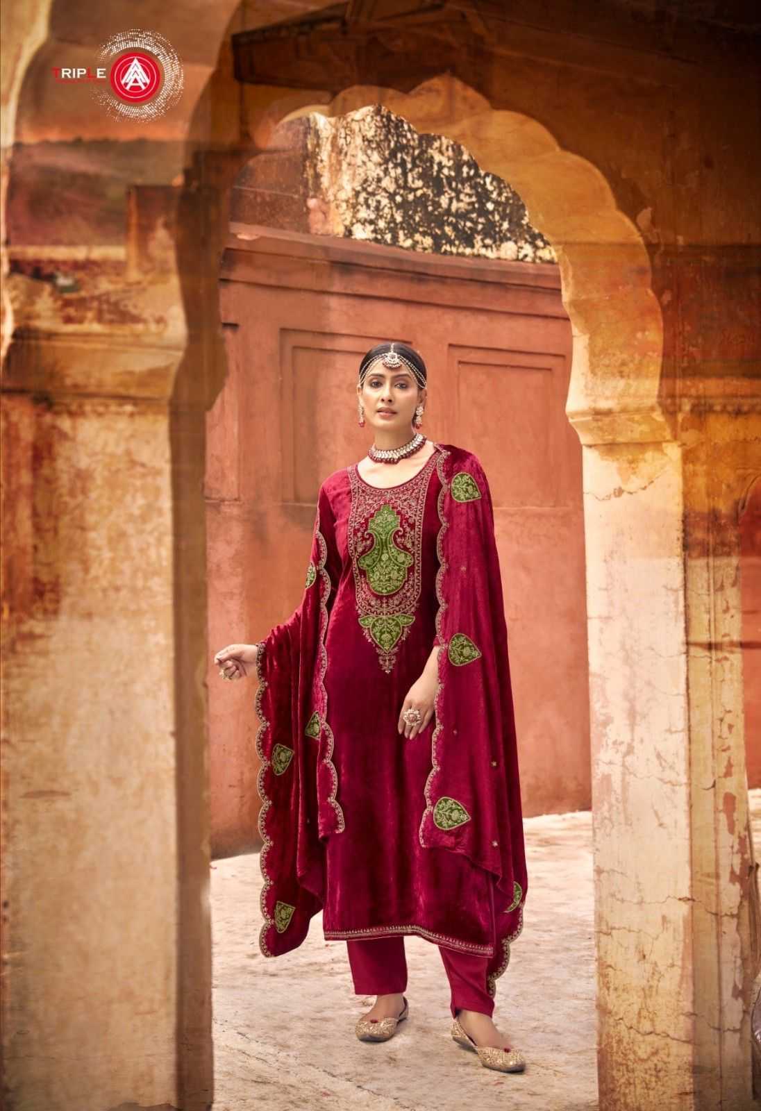 triple a taj arabia viscose makhmali velvet designer winter dress material