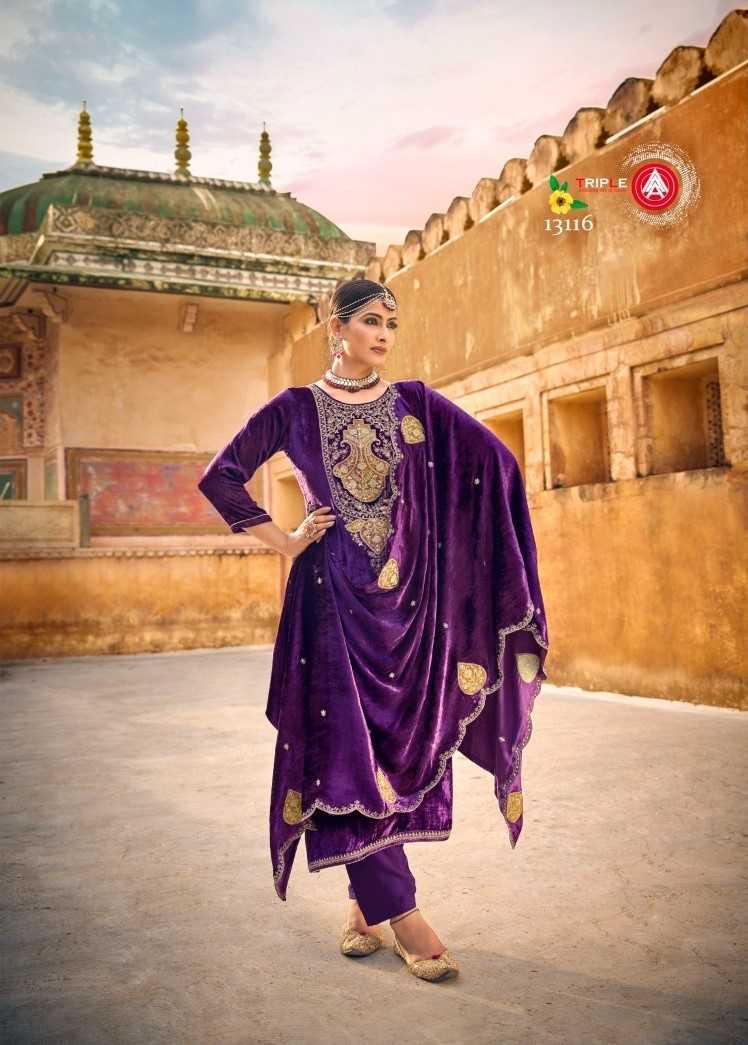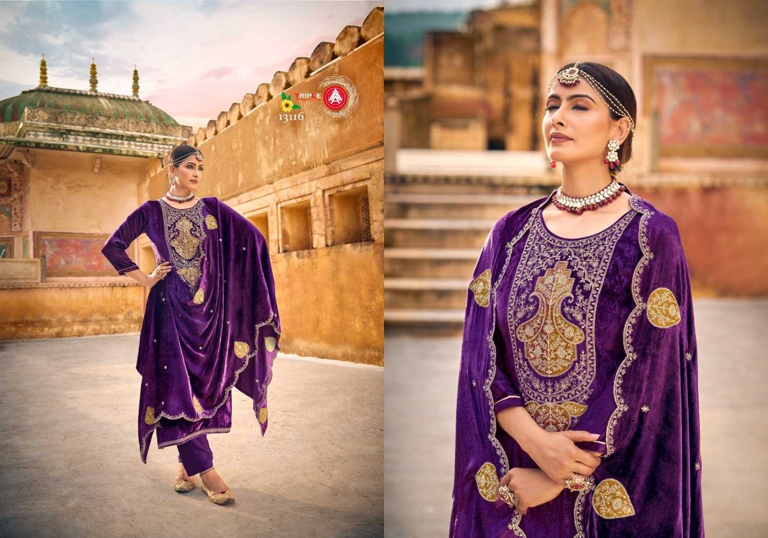 triple a taj arabia viscose mukhmali velvet big size readymade winter wear suits