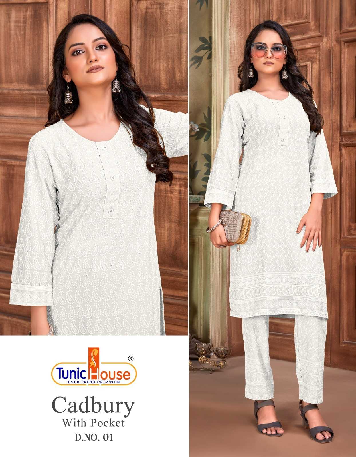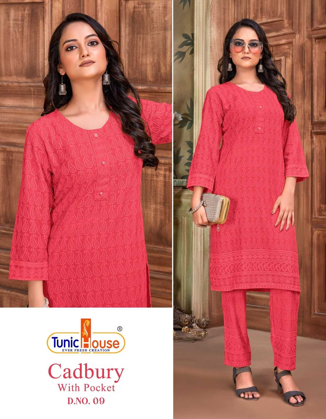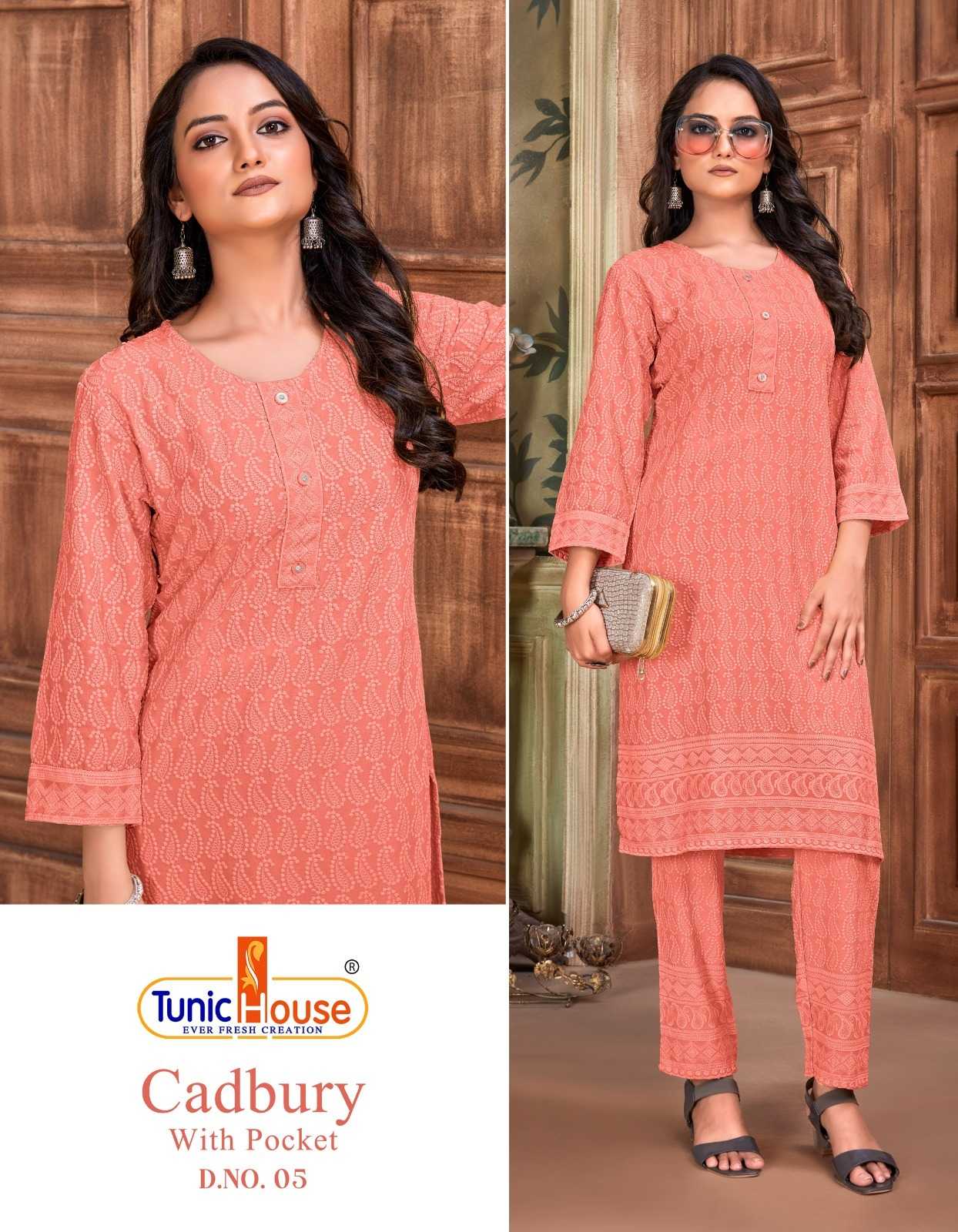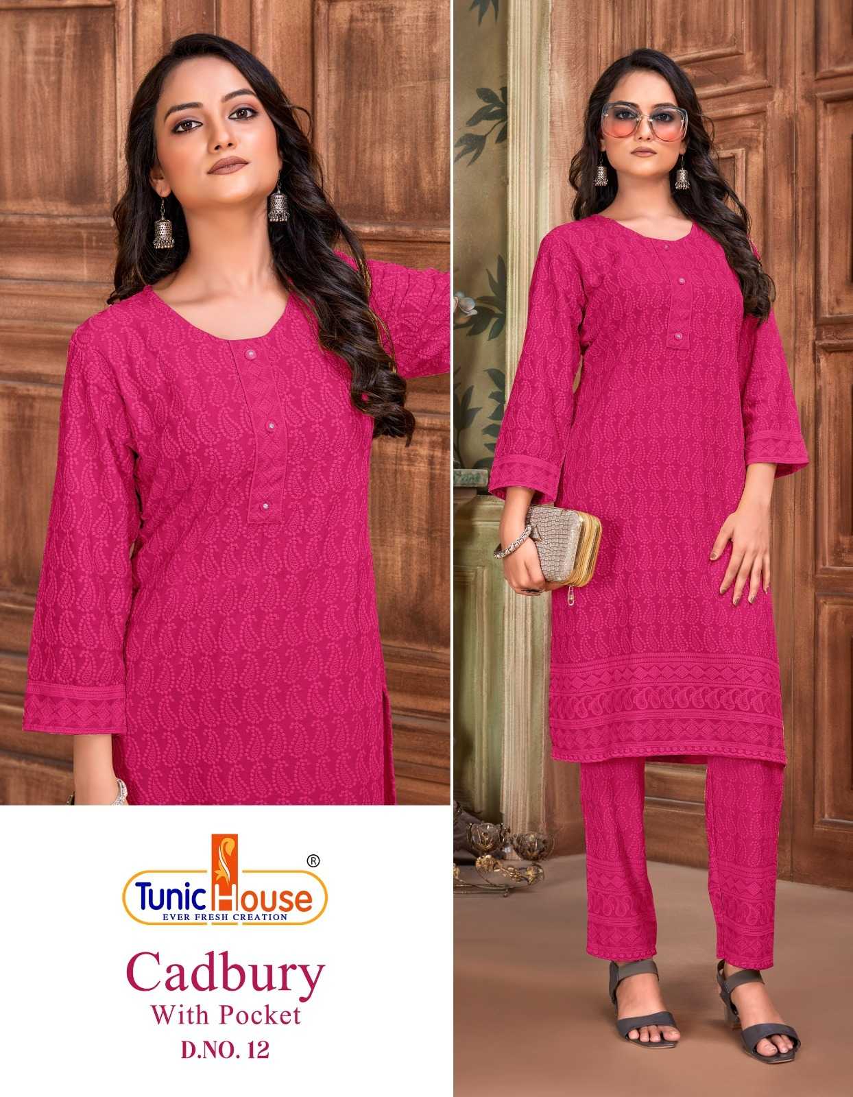 tunic house cadbury tb designer lucknowi work kurti with pant combo set