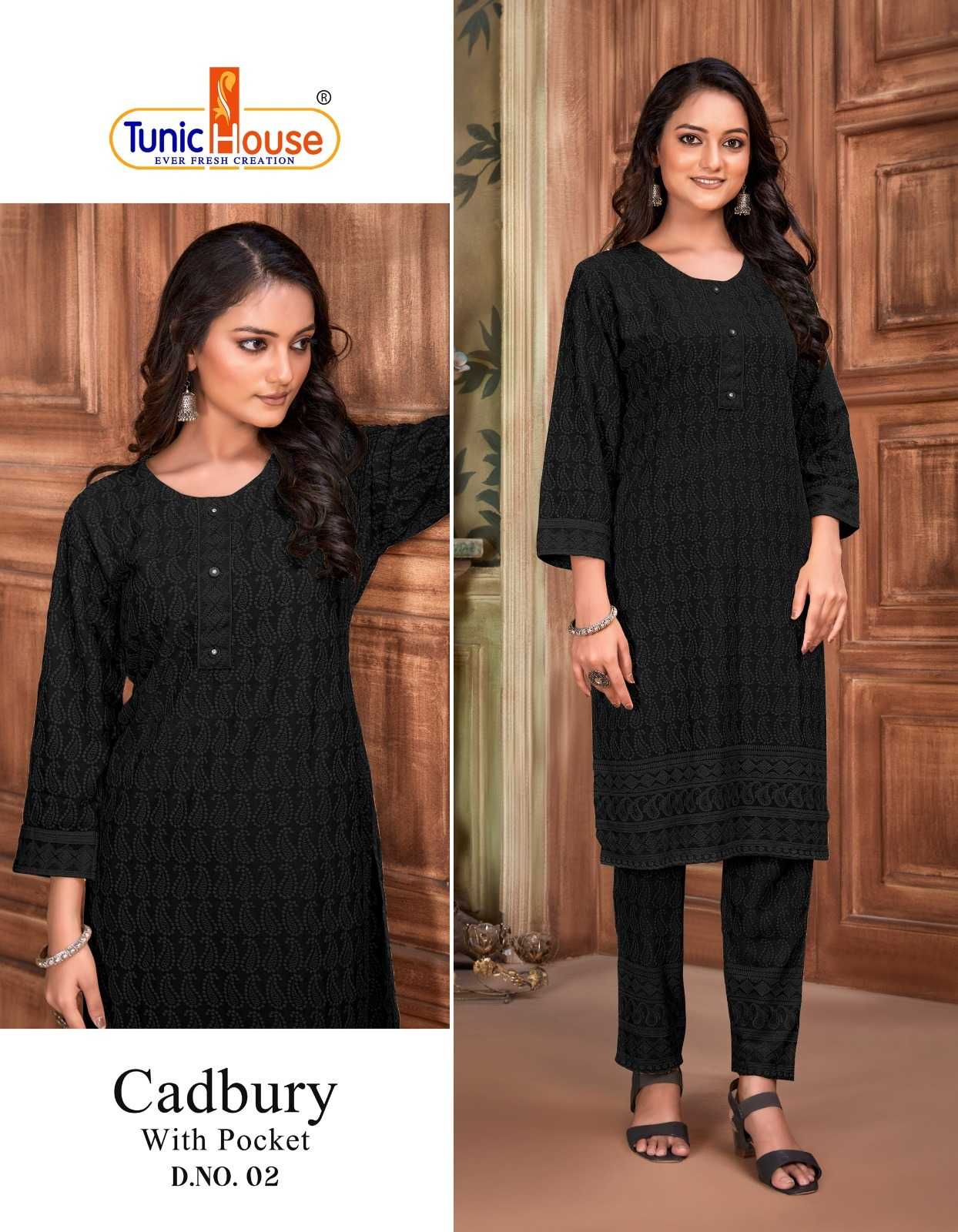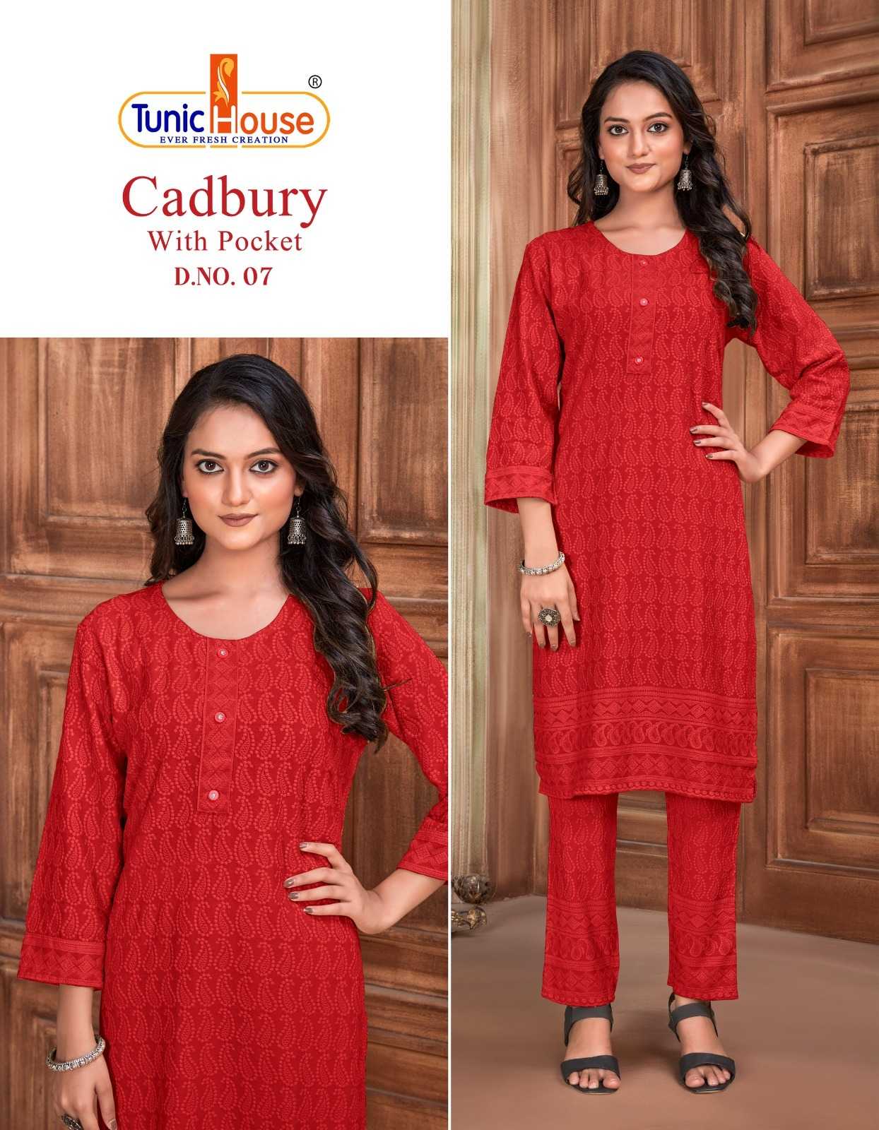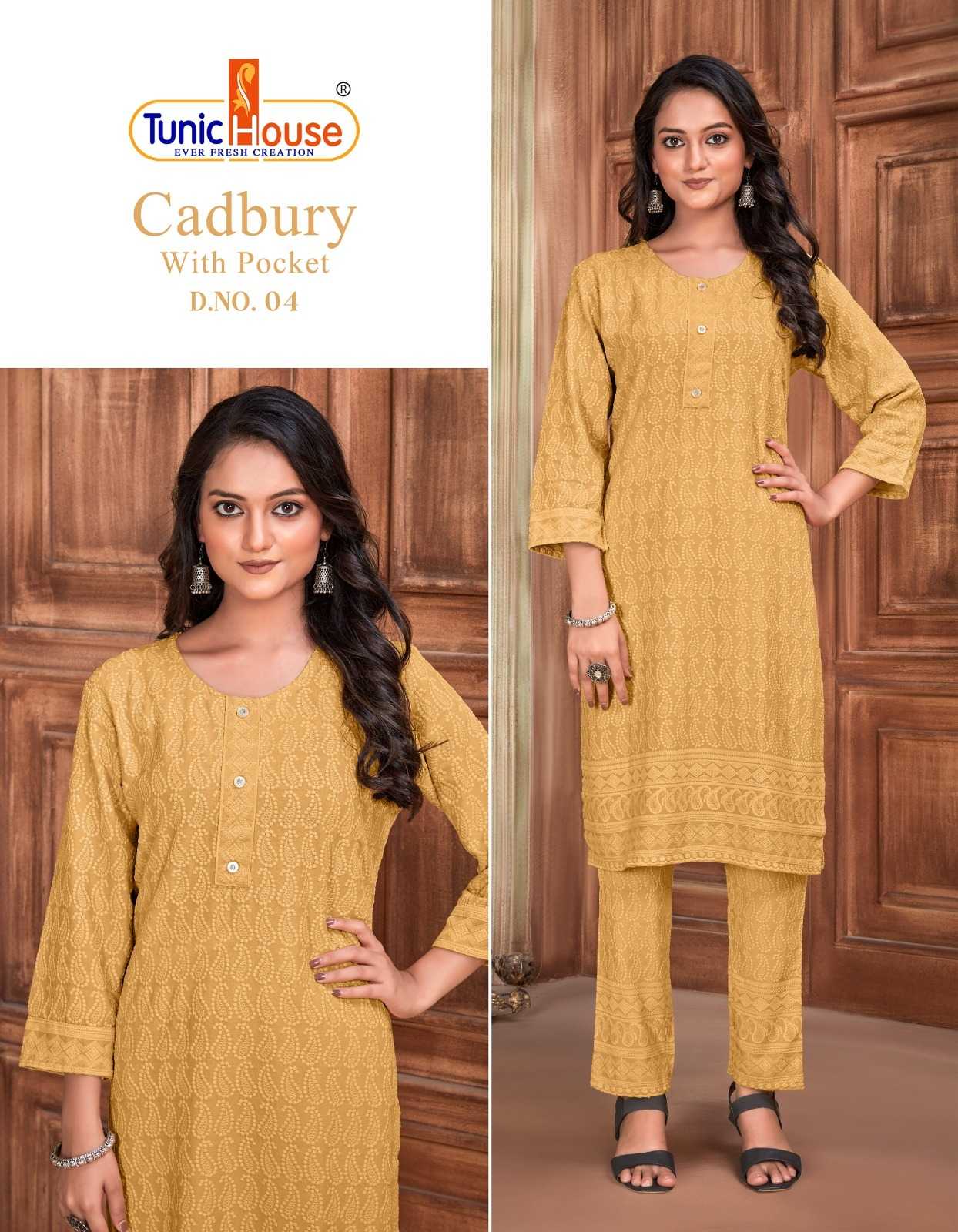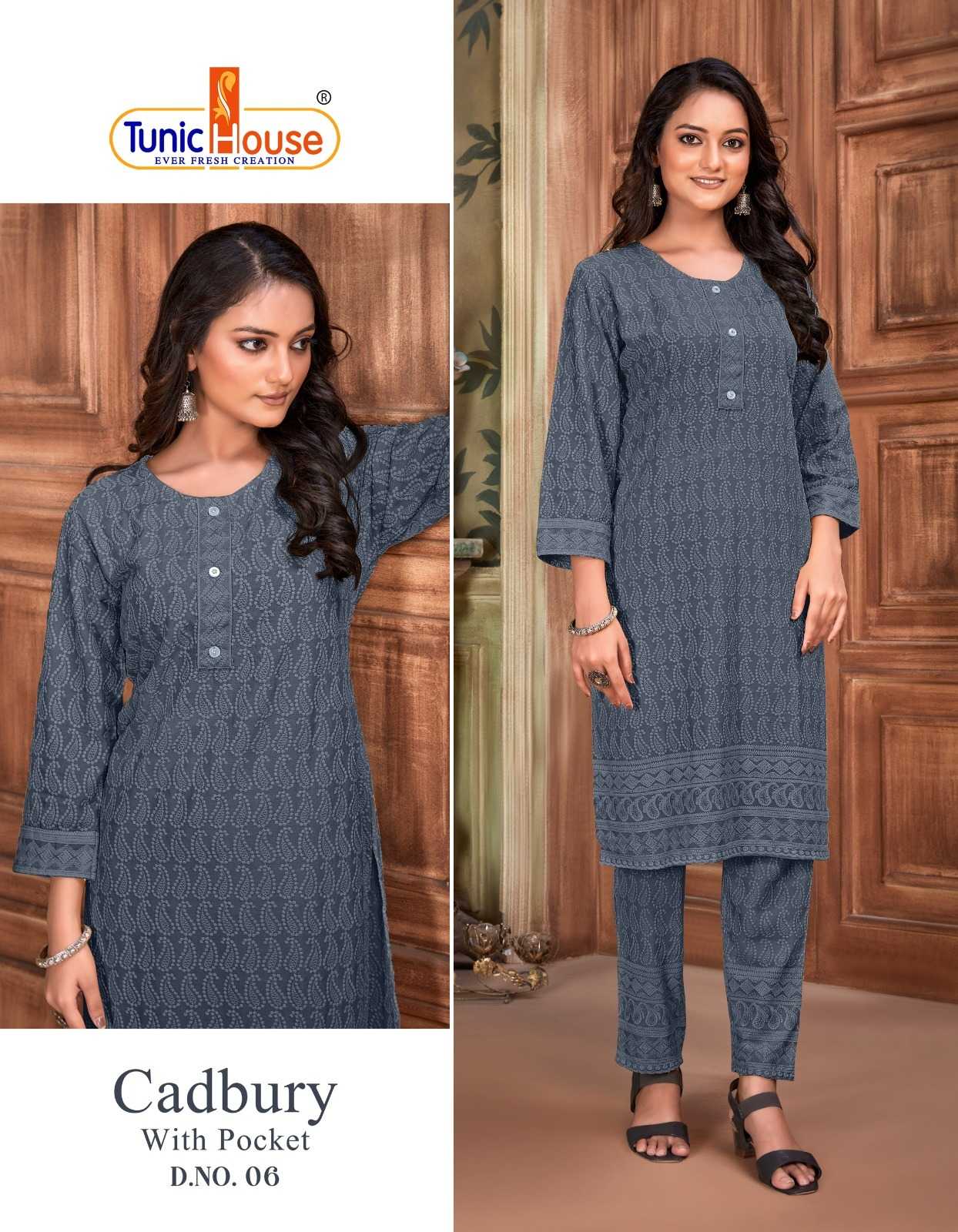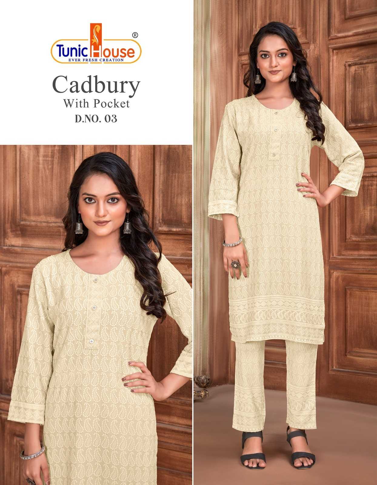 tunic house cadbury tb designer lucknowi work kurti with pant combo set