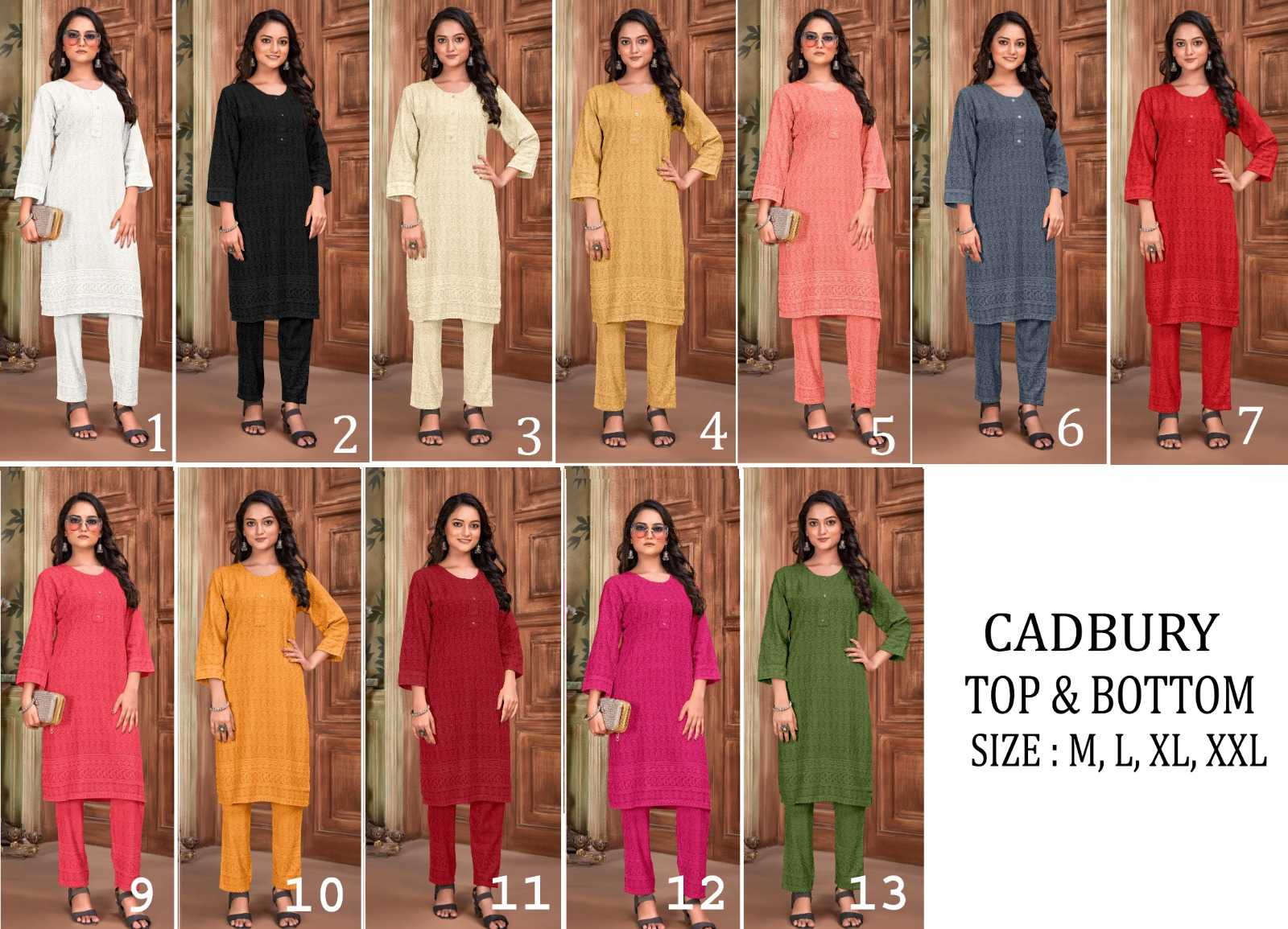 TUNIC HOUSE 🔥CADBURY-T.B🔥 TOP :- VISCOUS RAYON WORK DETAILS:- BOTTOM :- LUCKNOWI DAMAN WORK 👉LENGTH :- 37 Inches SIZE SET :- 4 SIZE COMBO (M,L,XL,2XL) RATE :- 650/- *DISPATCH :- today |