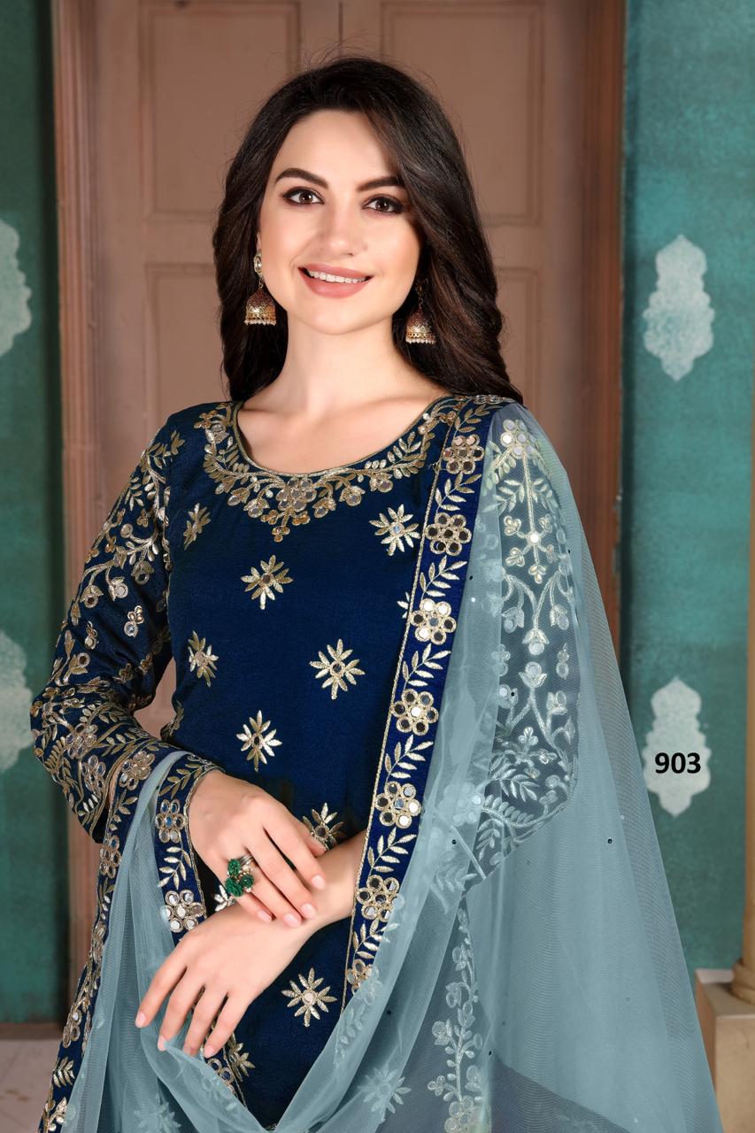 Dear sir, We are launching our most proffered catalog 🌹AANAYA 900 SERIES (vol-109)🌹 👗Top. – Art silk(first face) 👖Bottom- Santool 🇫🇲 Dupatta –Net With heavy glass work border Price :-1095 Dispatch from 31/08/2020 Note:-product came with real glass work GST 5 Percent Extra Limited set only |