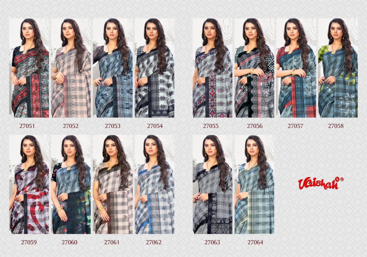 Brand - Vaishali : Catlog name - MILTON CHELKS. Rate -1045 per Pcs . Series 27051 to 27064. Fabric- Cotton chelks digital prints Delivery from today |
