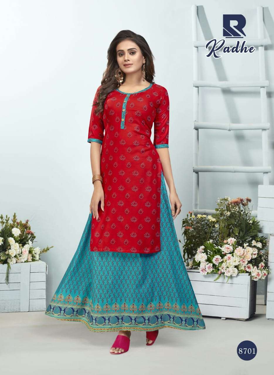 Dear Customer, We are launching our new Kurti Catlog Brand Name : Vala’s Catalog Name : Radhe TYPE.. KURTI with PALAZZO FABRIC.. print Length..40 inc Sizes. M L XL XXL 3XL Designs..08 Rate -670 per pcs . Set to set . GST 5 Percent Extra |