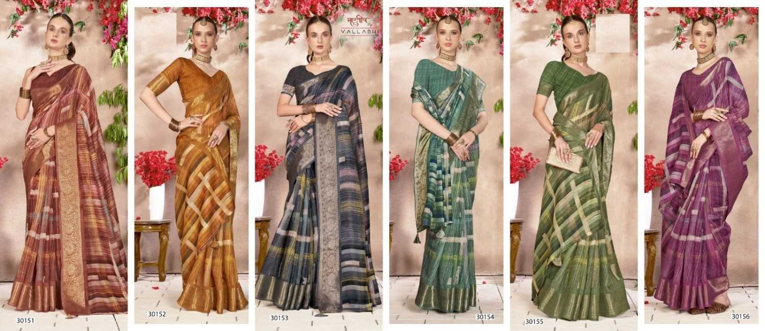 vallabhi prints anuprabha vol 5 linen 30151-30156 regular wear saree