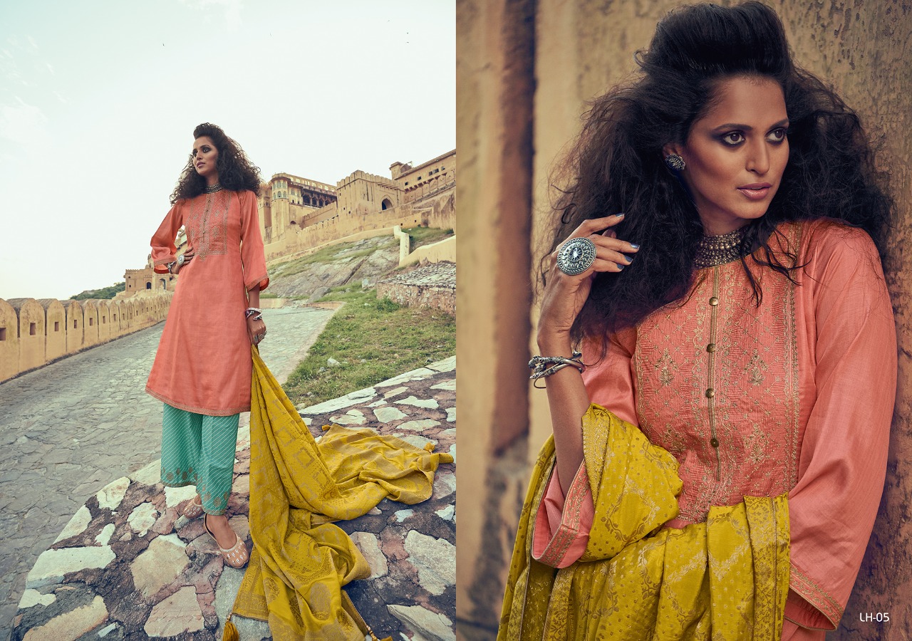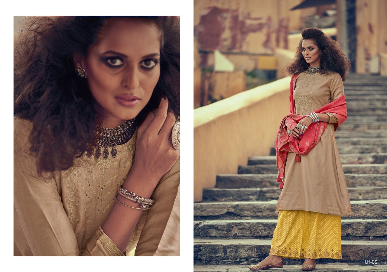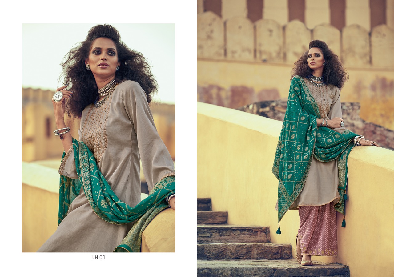 Presenting to you our new catalogue. LEHARIYA From - Varsha Top -Pure Tussar Silk With Designer Embroidery Bot - Finest Lawn With Embroidery Dup - Pure Banarasi Weaving Solid Rate:- 2140/- 1 Set:- 06 pcs. |