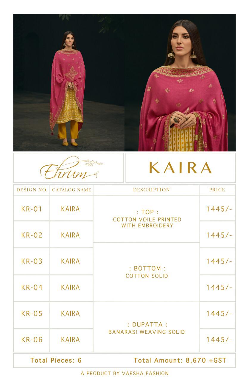 Dear Customer Varsha Kaira Cotton voile printed with embroidery with banarasi weaving dupatta Price- 1445/- 06 pcs catalogue |