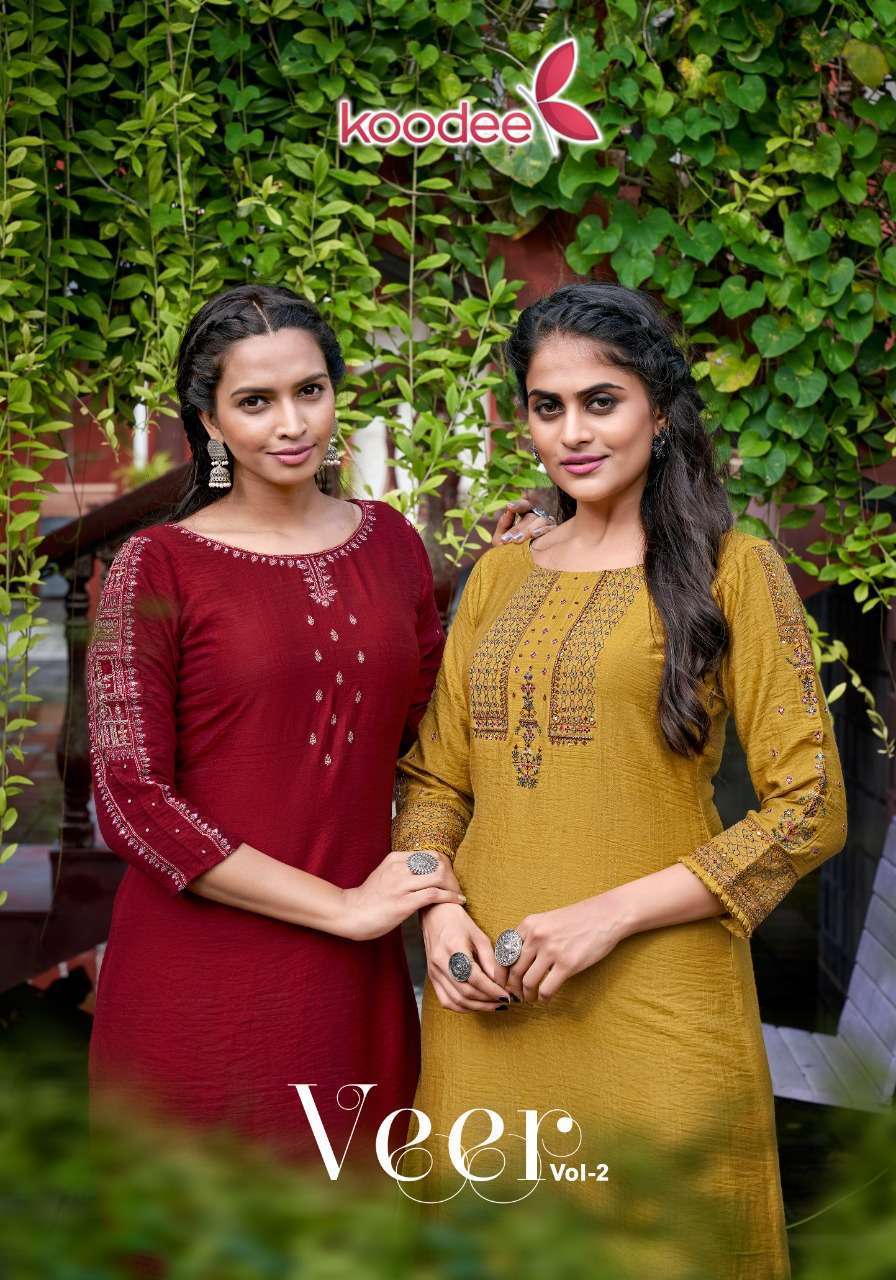 veer vol 2 by koodee viscose silk handwork designer straight kurtis