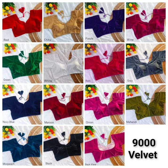 ➡️ EXCLUSIVE ORIGINAL 9000 VELVET PARTYWEAR PAN NEACK FANCY BLOUSE ➡️Design- VELVET PAN NEACK ➡️Fabric- Original 9000 Velvet ➡️Inner- Cotton ➡️Work- Exclusive Pan Neack Pattern ➡️Pattern- PAN NEACK ➡️Quality- A1 ➡️Padded- Yes ➡️Size- Free Size 40 Ready ➡️Length- 14-15 Inch ➡️Open Type- Back Hook ➡️Sleev- Elbow Sleeves Atteched ➡️Colour:- (14 Colours Available) 🖤💛🧡❤️🩷️💙💜🤍🤎 ➡️Price- 300/- +GST ➡️SHIPPING EXTRA ➡️ BOOK FAST READY STOCK |
