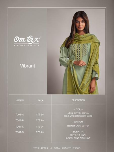 Om Tex Presents Latest Collection Launched on 12-02-2025. Presenting Beautiful collection of 4 PCS with Unstitched .
