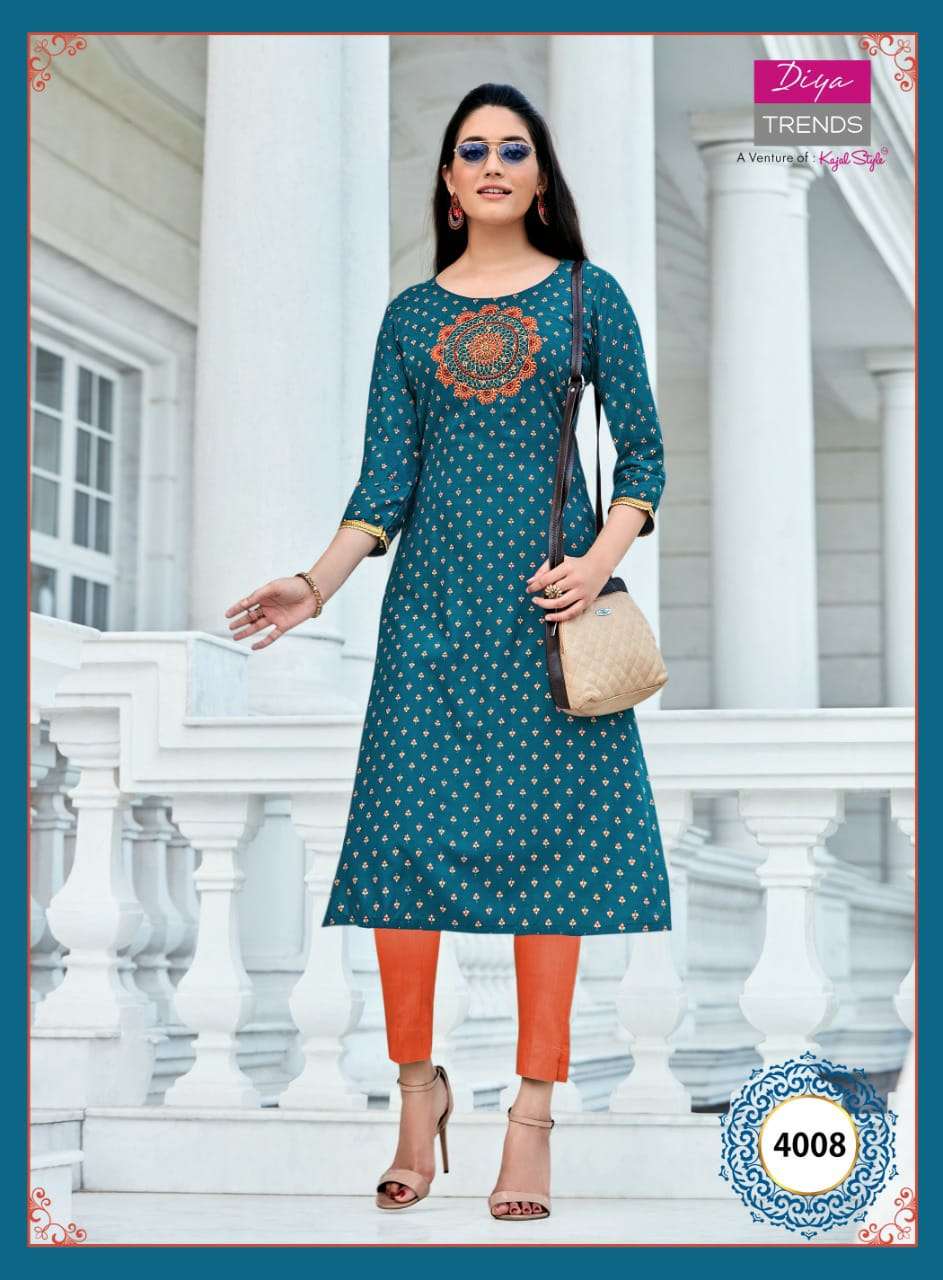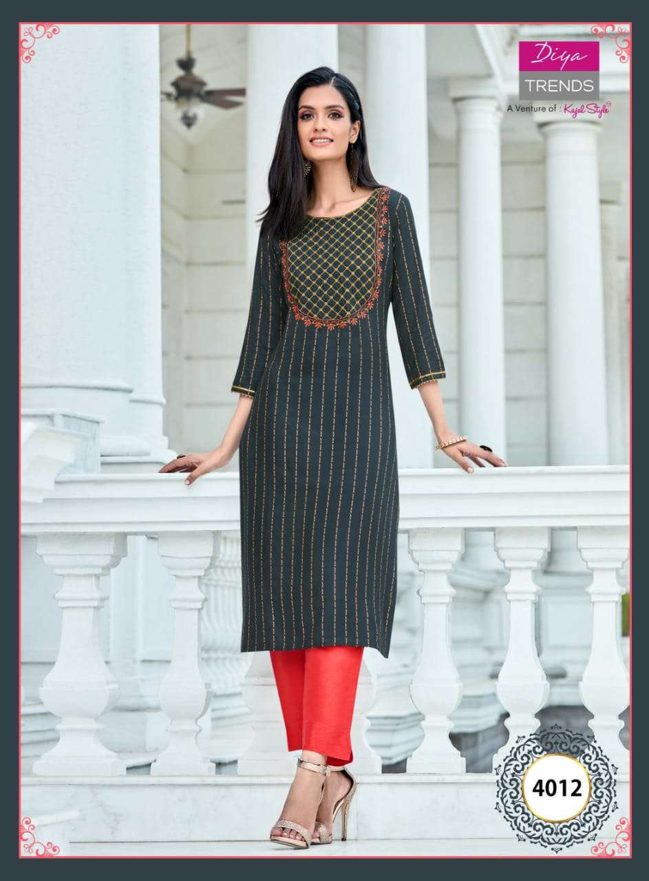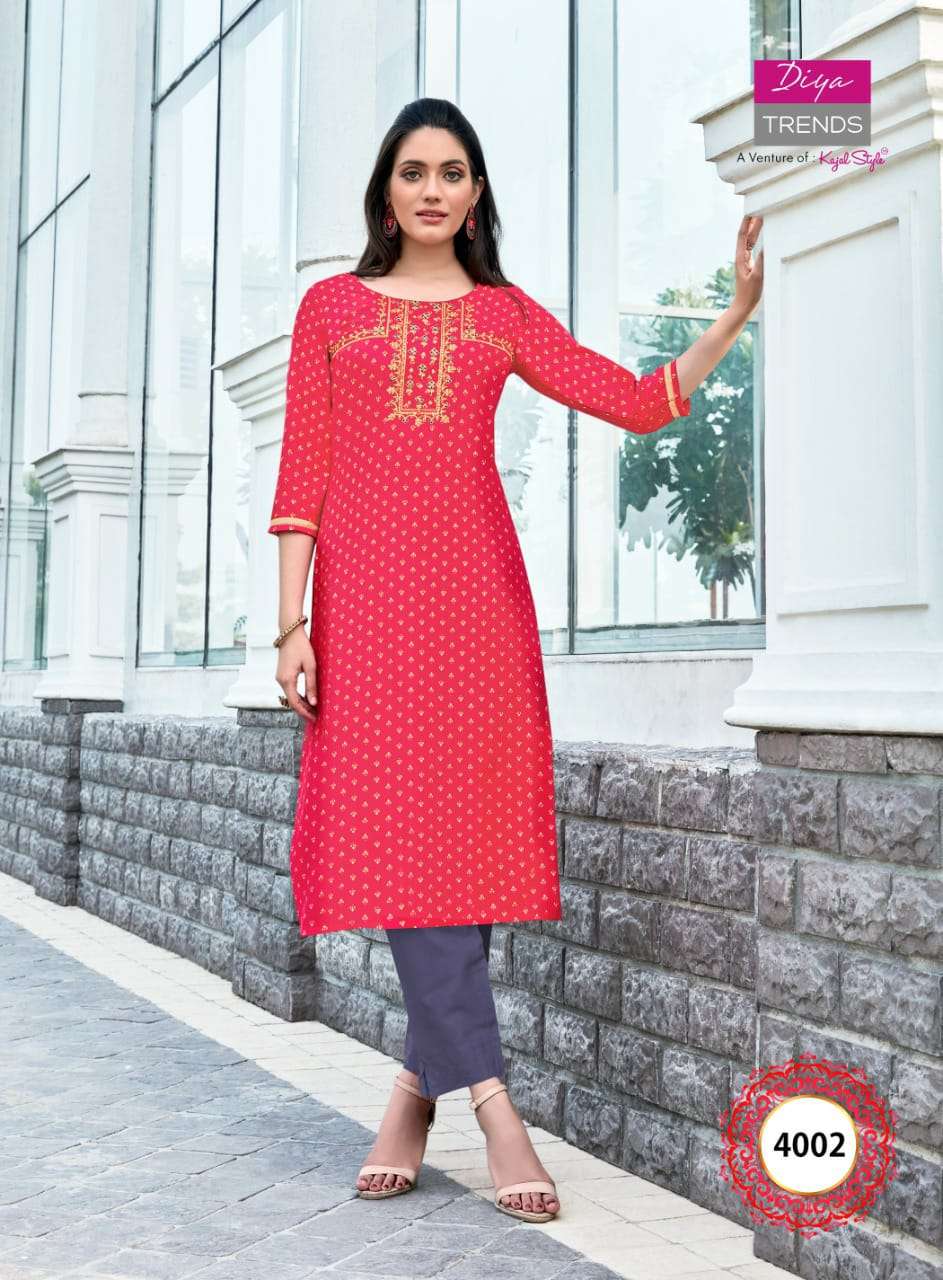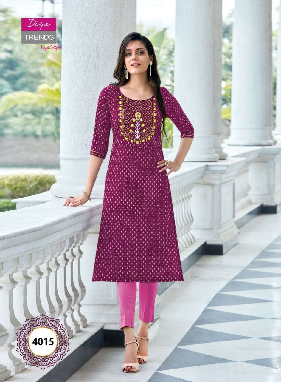 Victoria Vol 4 Heavy Rayon Print Fancy Kurti With Embroidery By Diya Trendz