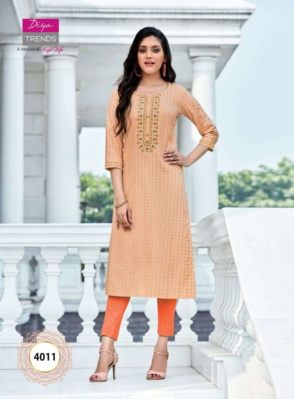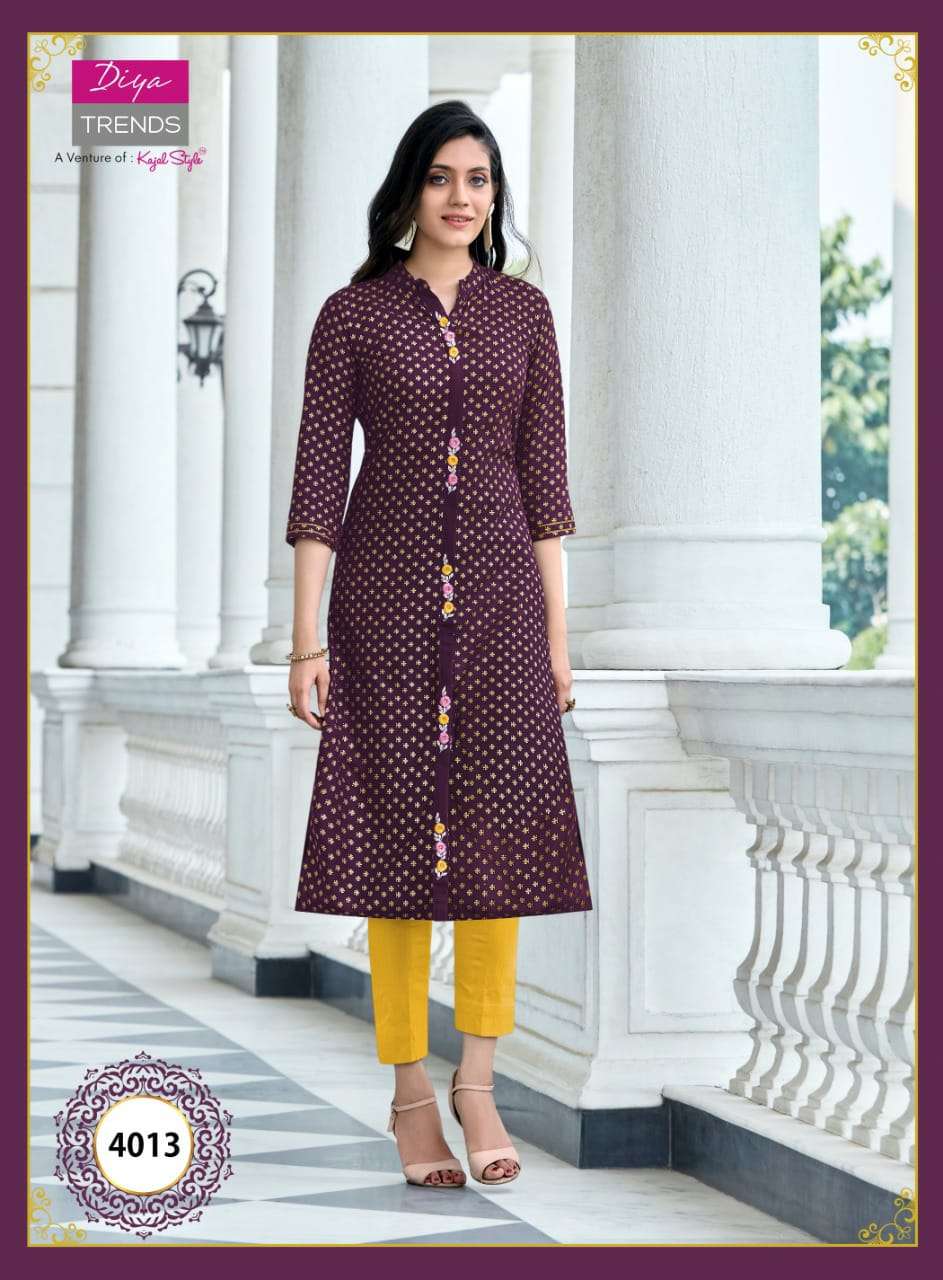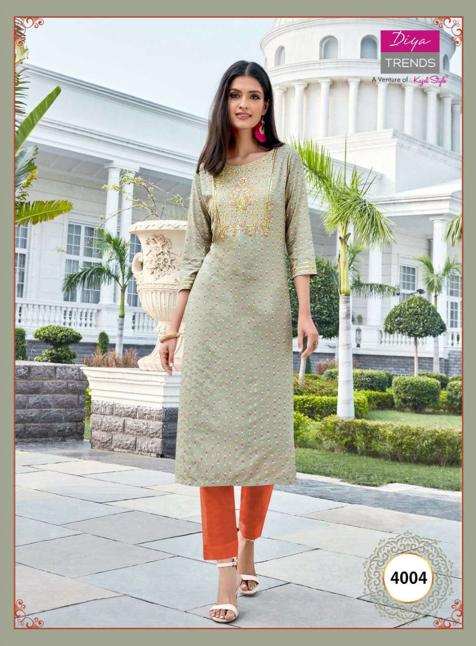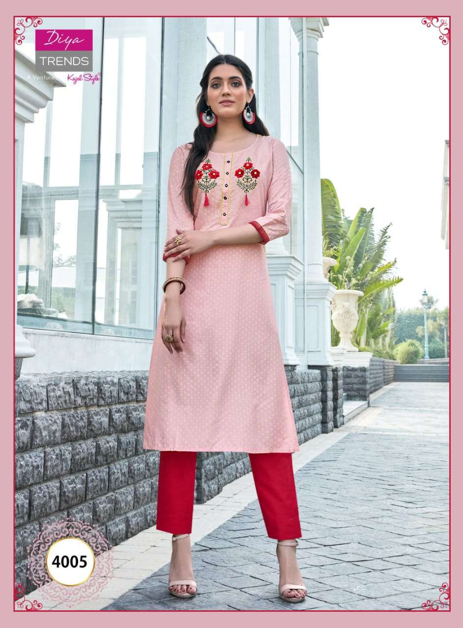 Victoria Vol 4 Heavy Rayon Print Fancy Kurti With Embroidery By Diya Trendz