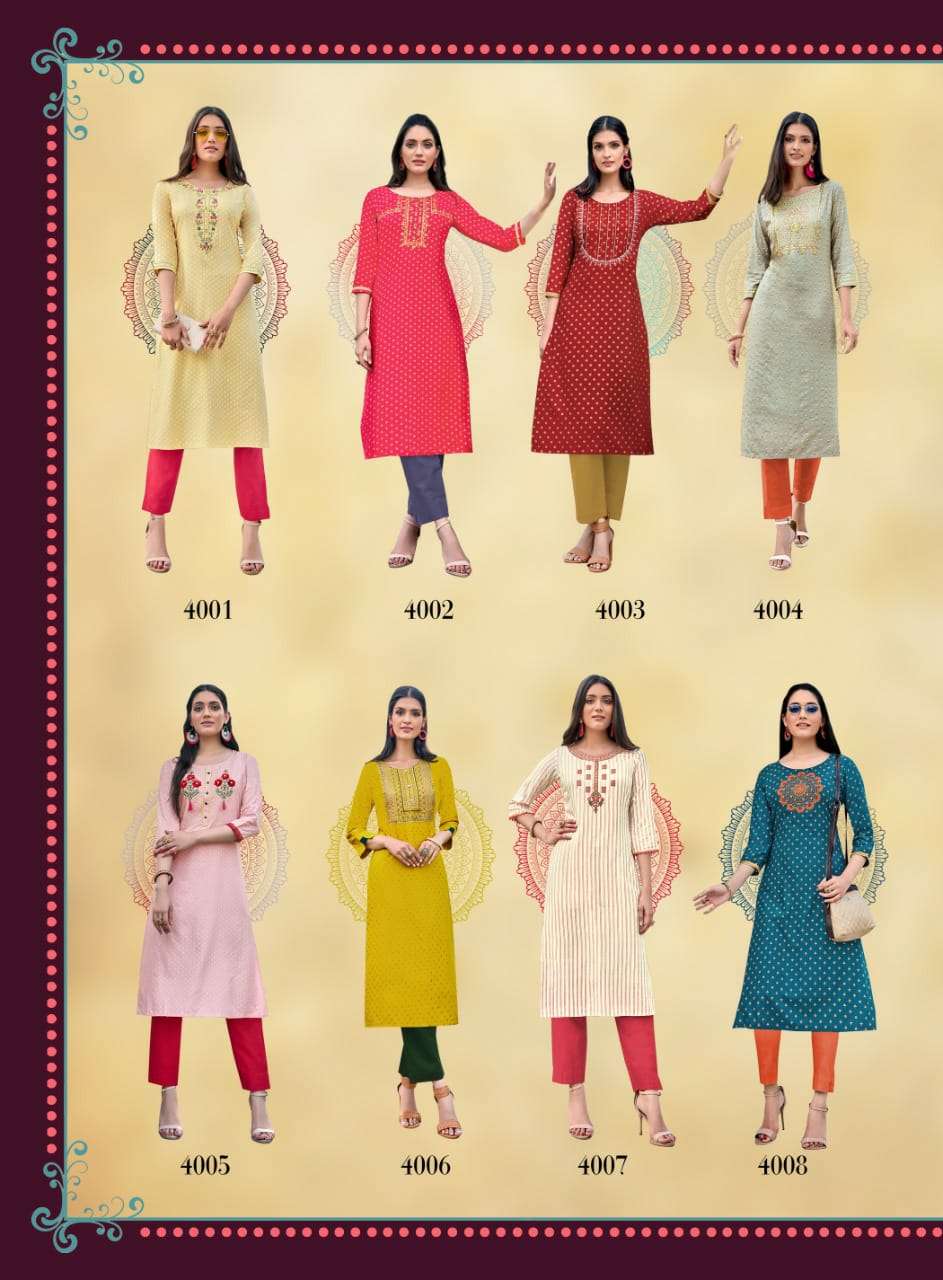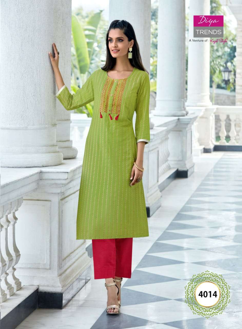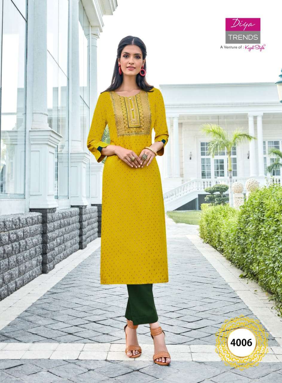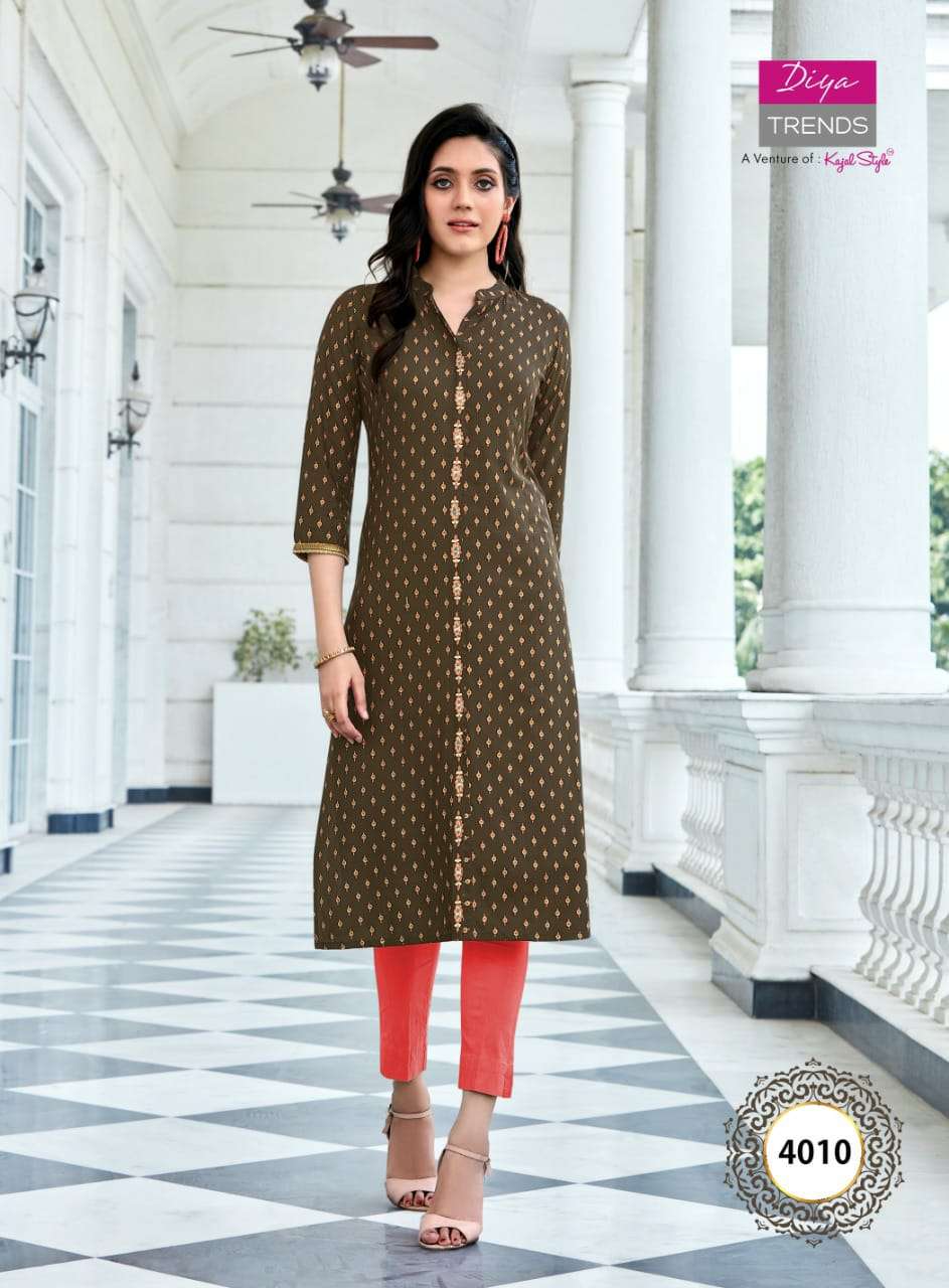 Victoria Vol 4 Heavy Rayon Print Fancy Kurti With Embroidery By Diya Trendz