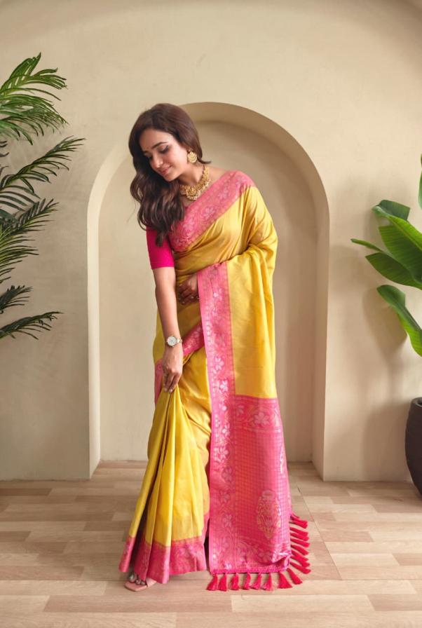 New Catalogue 😍 🥻 Catalogue - Vidhi 🥻👉🏻Description - Dual tone silk sarees with all over zari weaves, Contrast pallu and designer chaap border. 👉🏻 Blouse - as shown in videos. Rate : 1350/- +GST Ready stock 🚢🚢 |