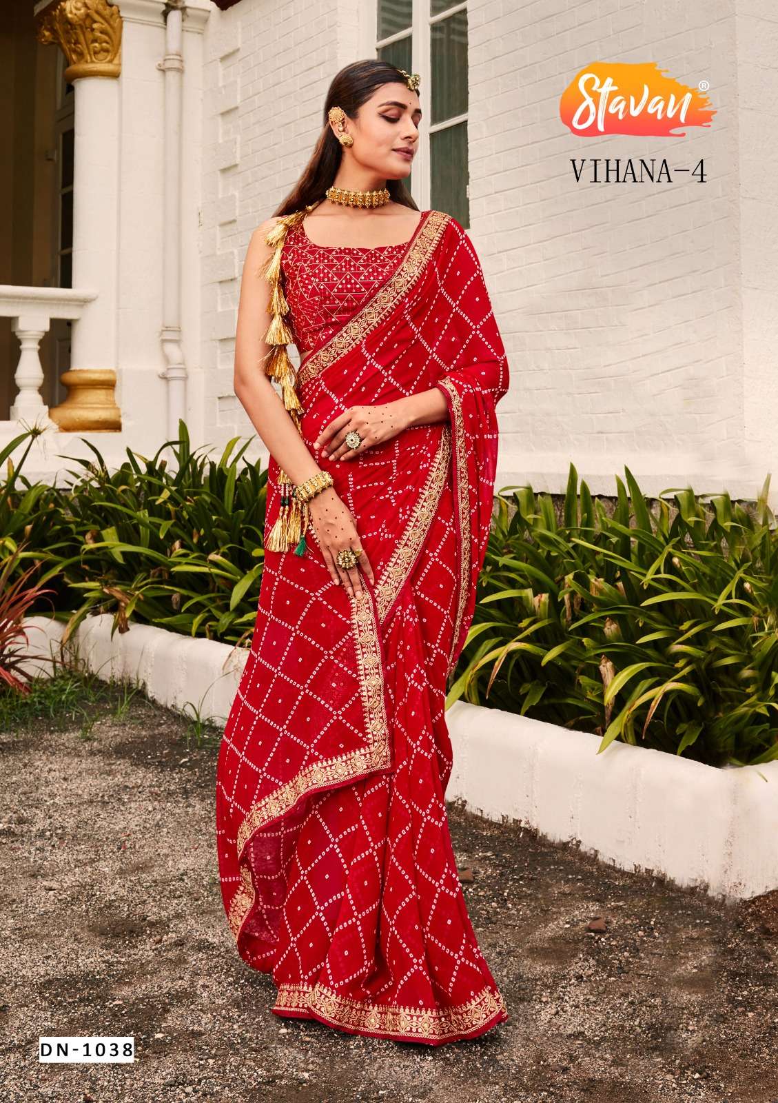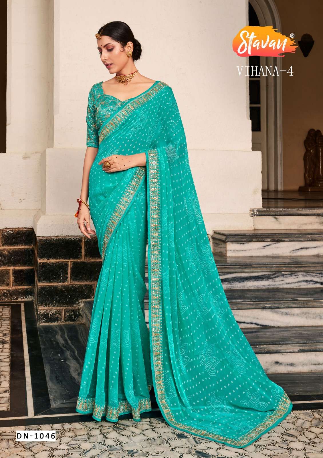 🔅 STAVAN BRAND 🔅 🆕 VIHANA-4 🆕 GEORGETT EMBROIDERY BORDER with EMBROIDERY BLOUSE |