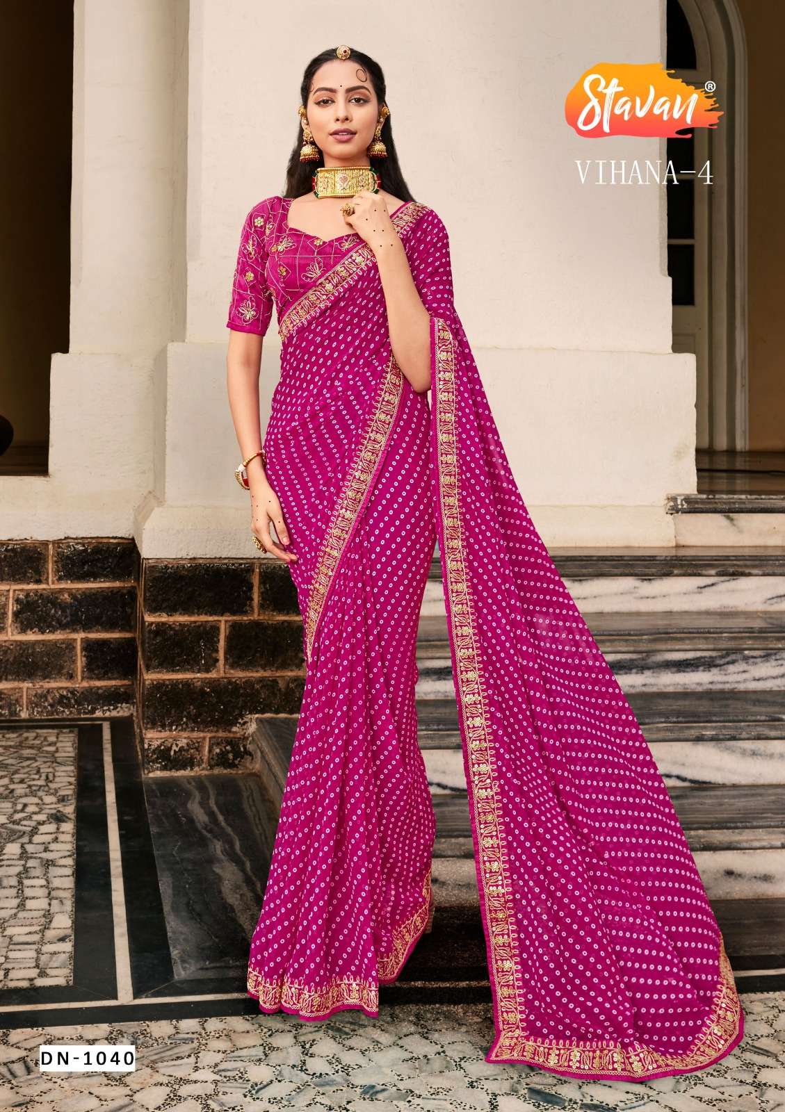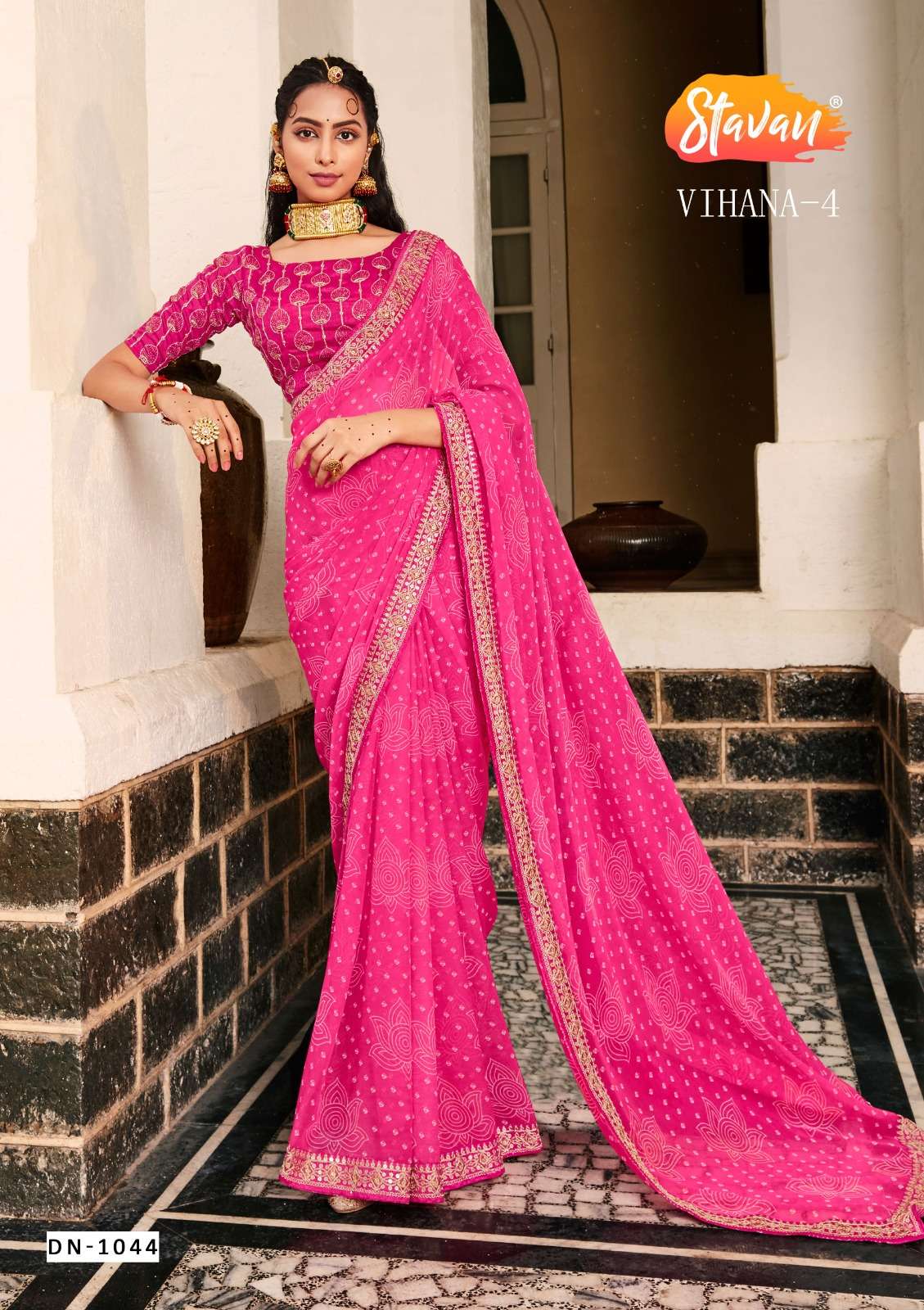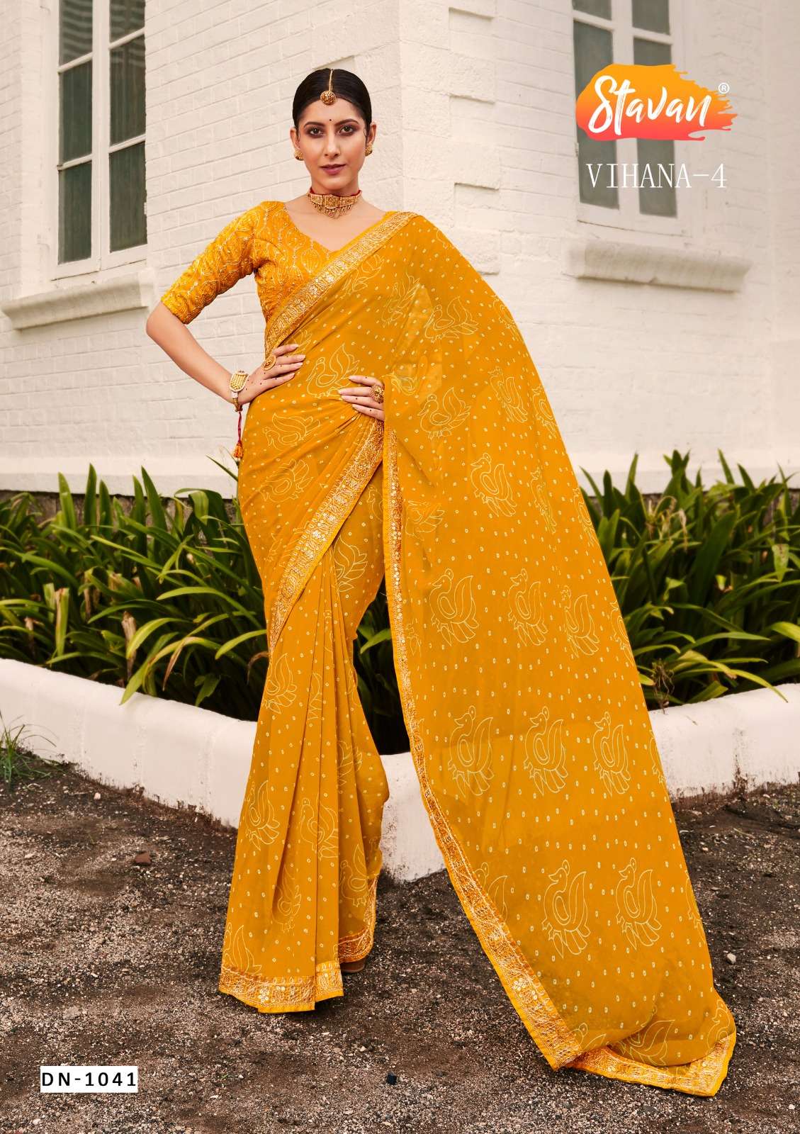 vihana vol 4 by stavan georgette embroidery border fancy sarees wholesaler