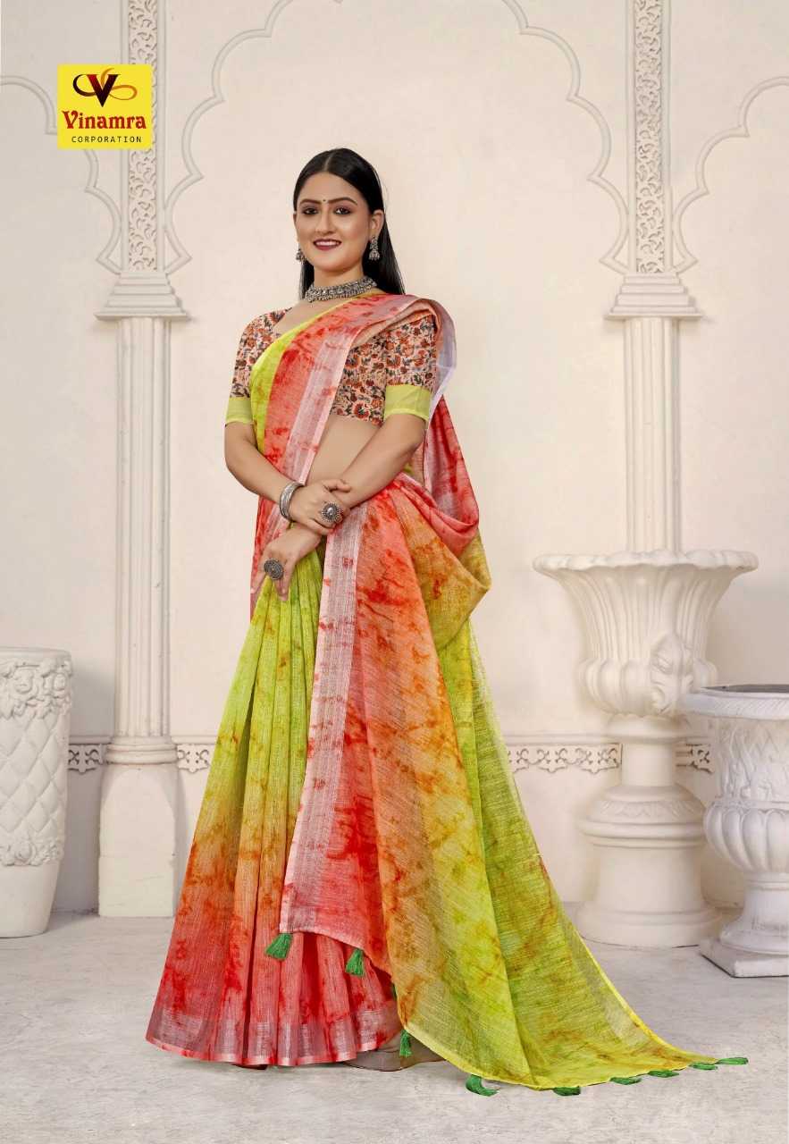 vinamra prizam digital vol 3 amazing casual wear sarees with printed blouse