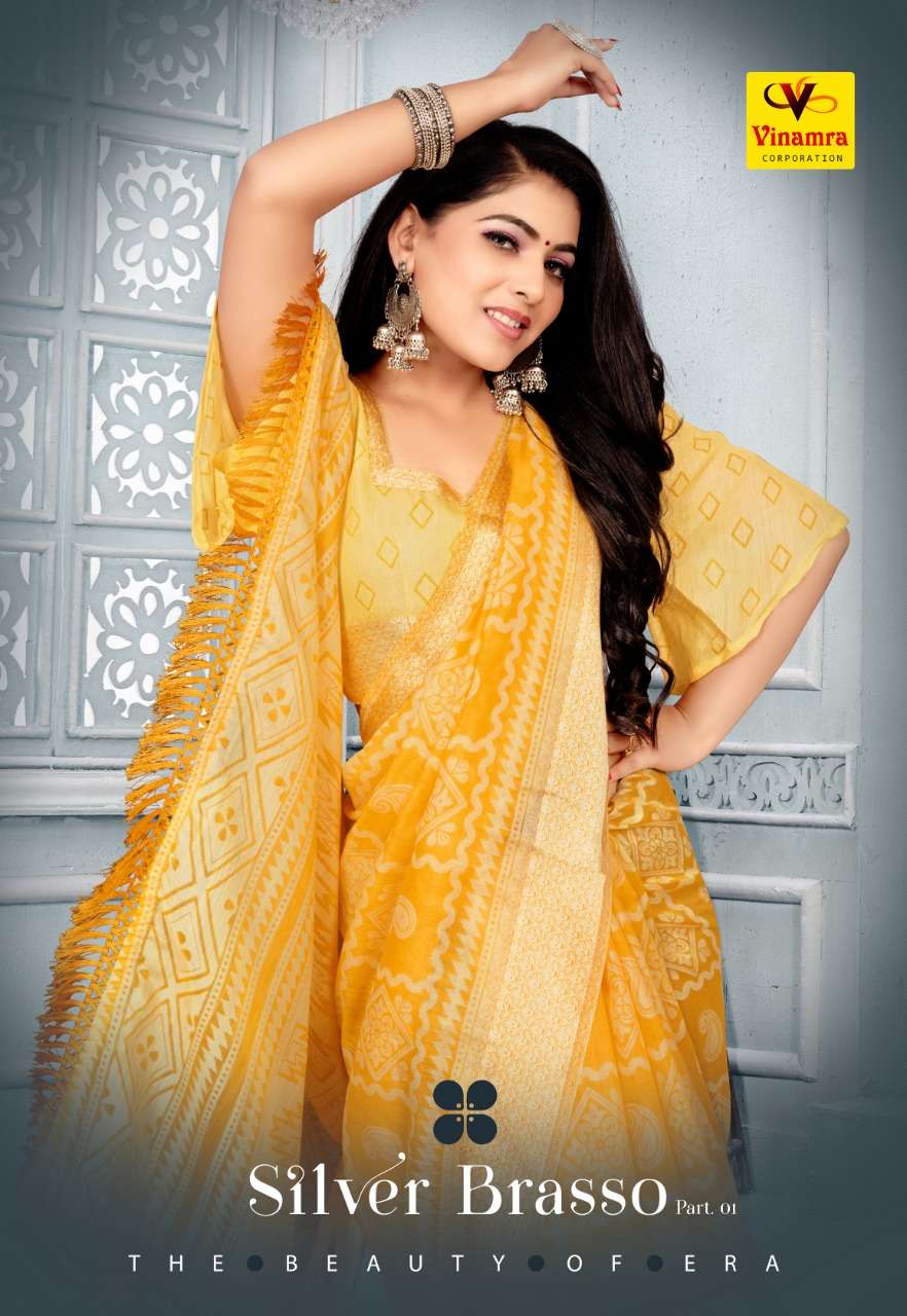 vinamra silver brasso vol 1 cotton sattin brasso sarees wholesaler