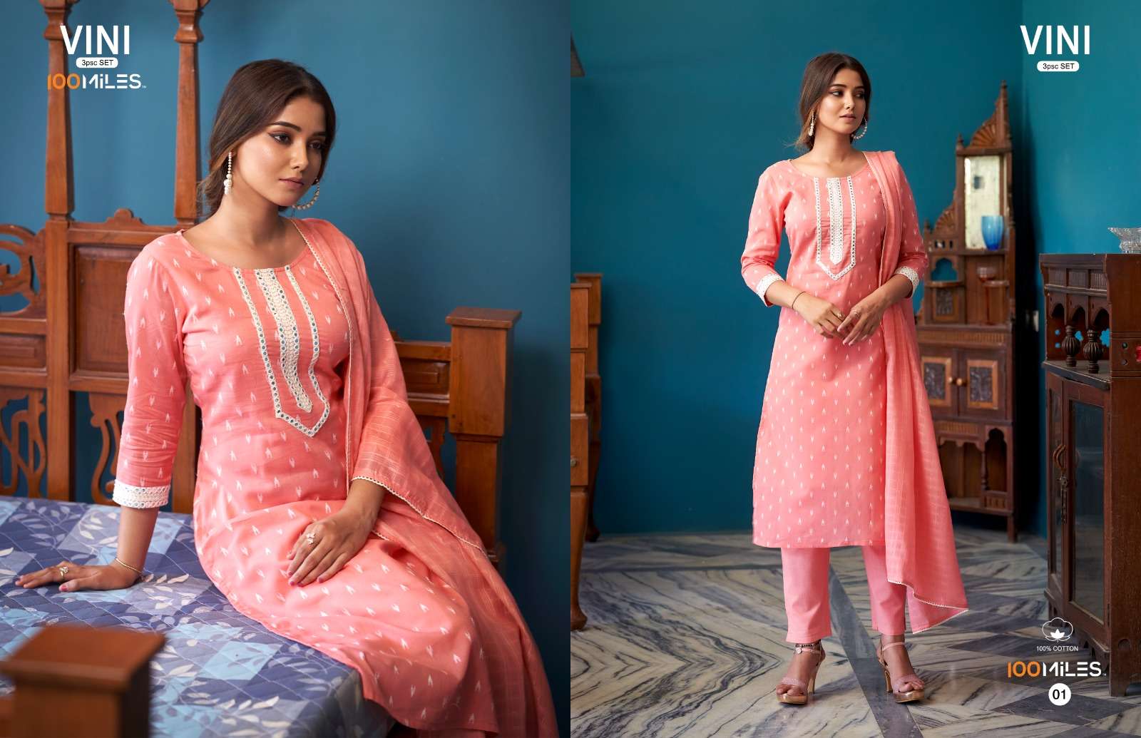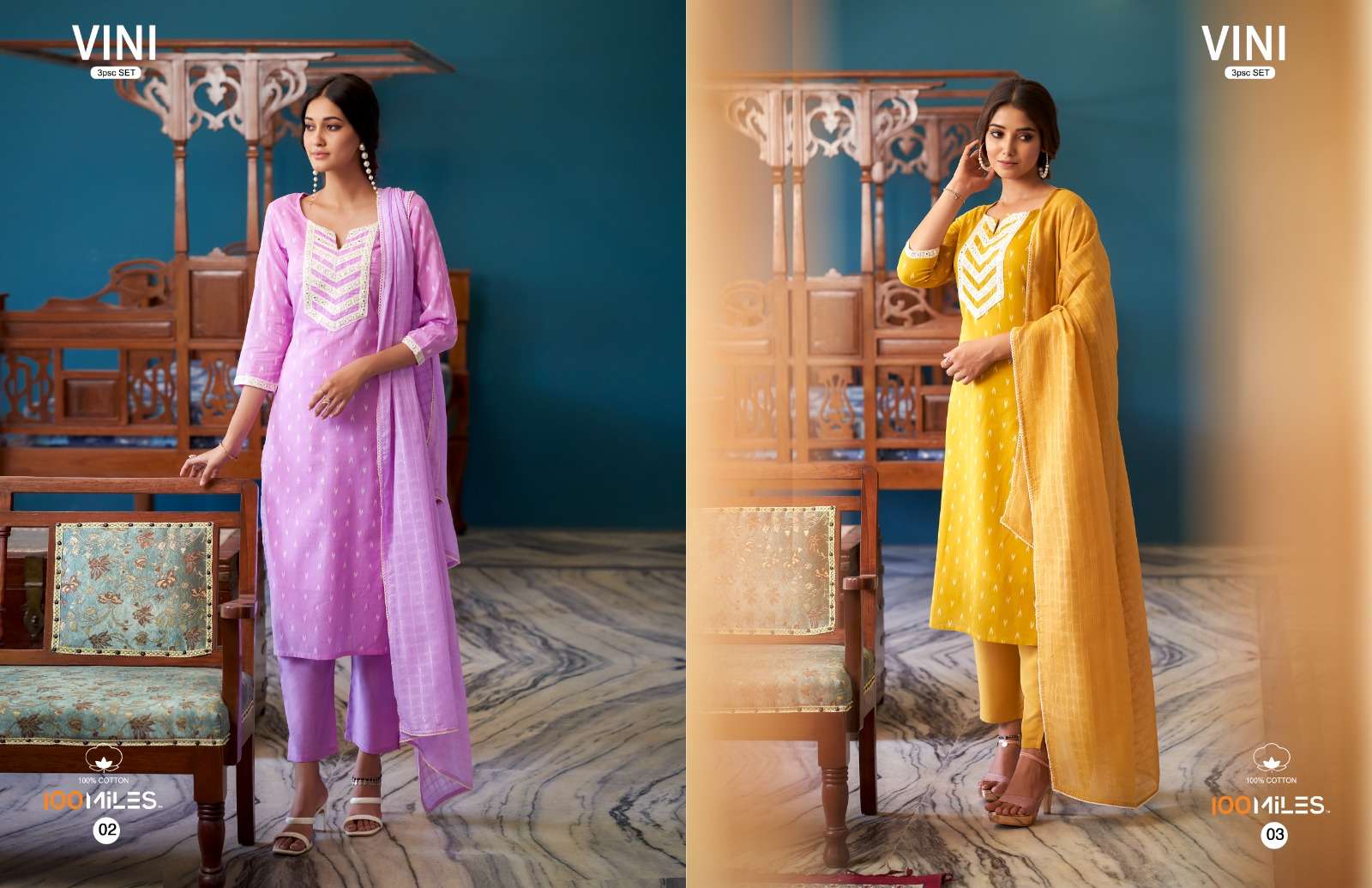 vini by 100 miles 3pcs set fancy work kurti with pant and dupatta