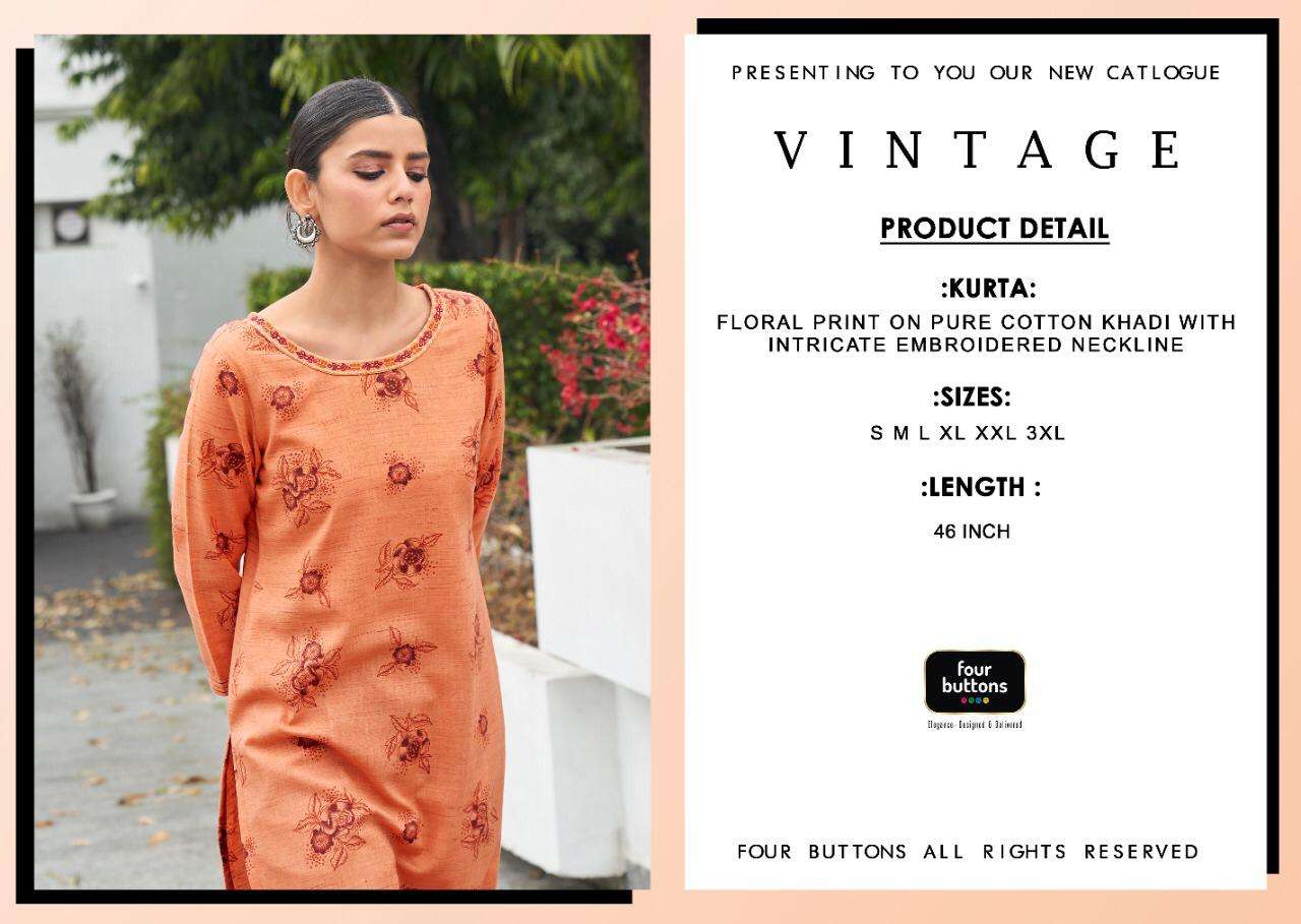*FOUR BUTTONS * proudly launches its NEW collection 2021 "VINTAGE" FABRIC - FLORAL PRINTS ON PURE COTTON KHADI WITH INTRICATE EMBROIDERED NECKLINE. RATE - Rs 399/- LENGTH - 46" |