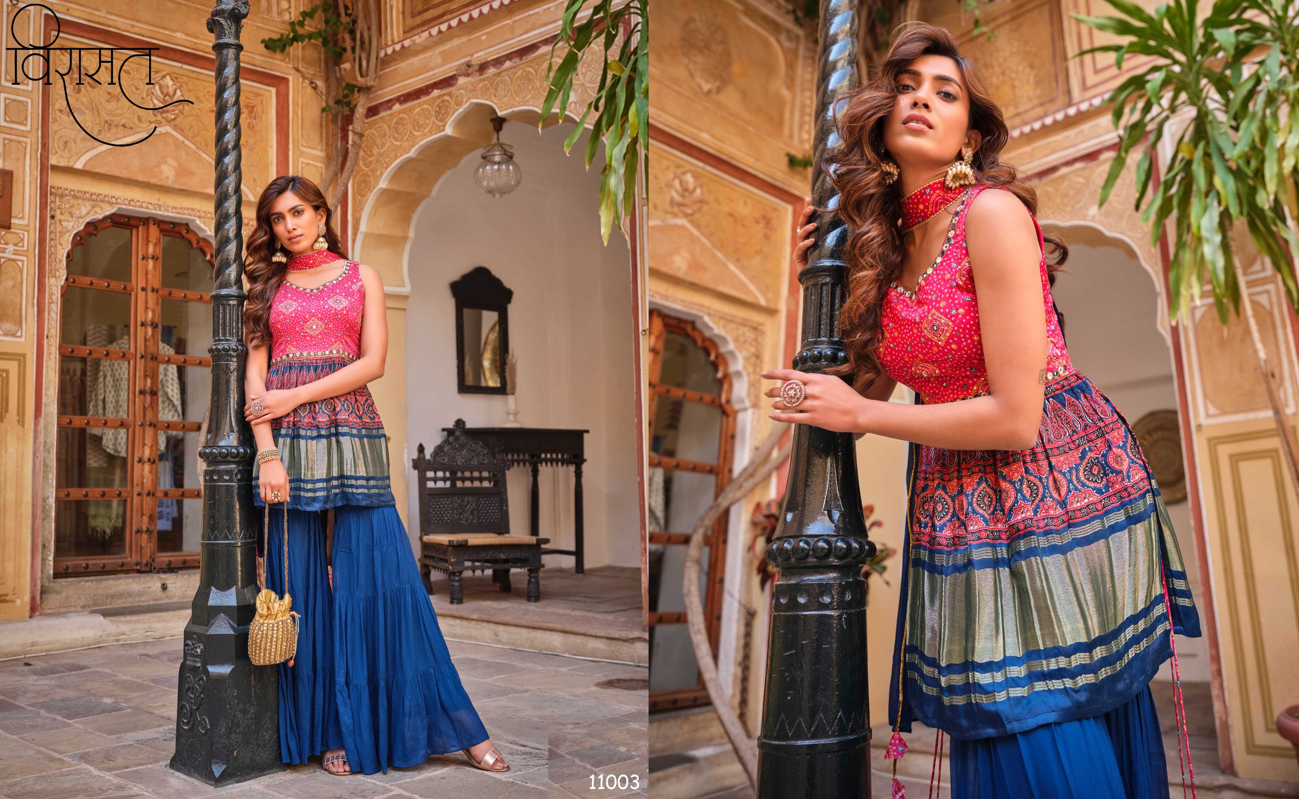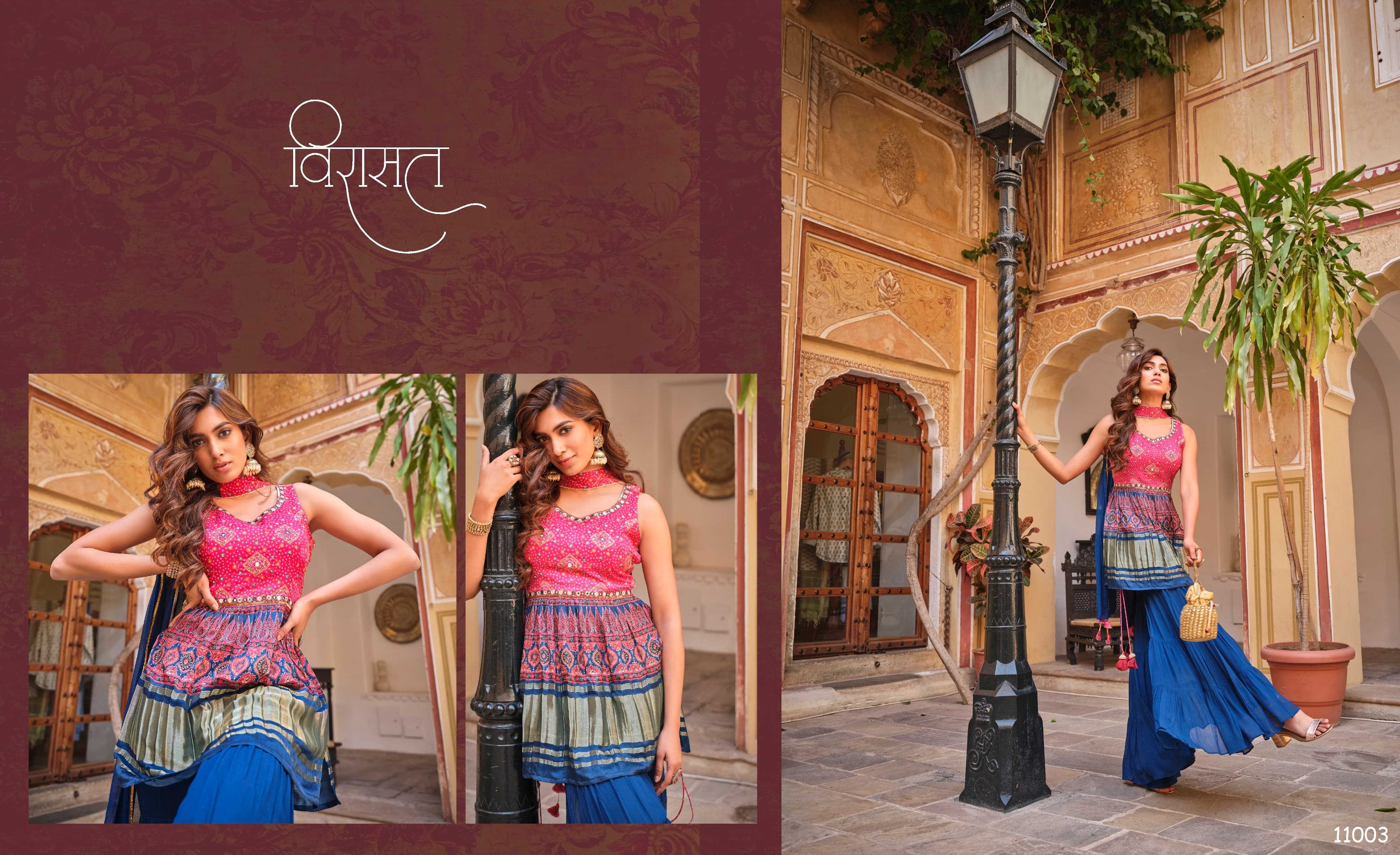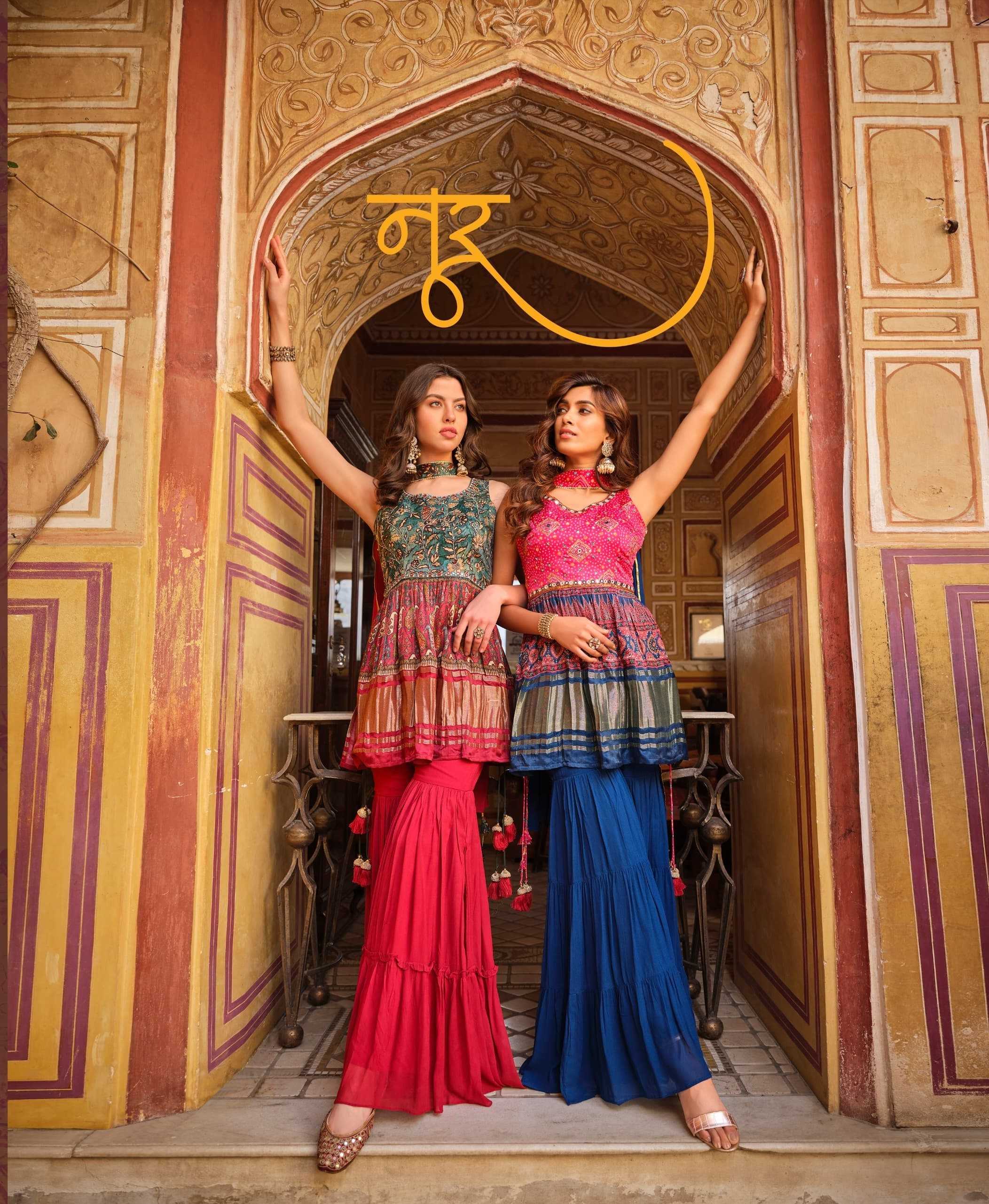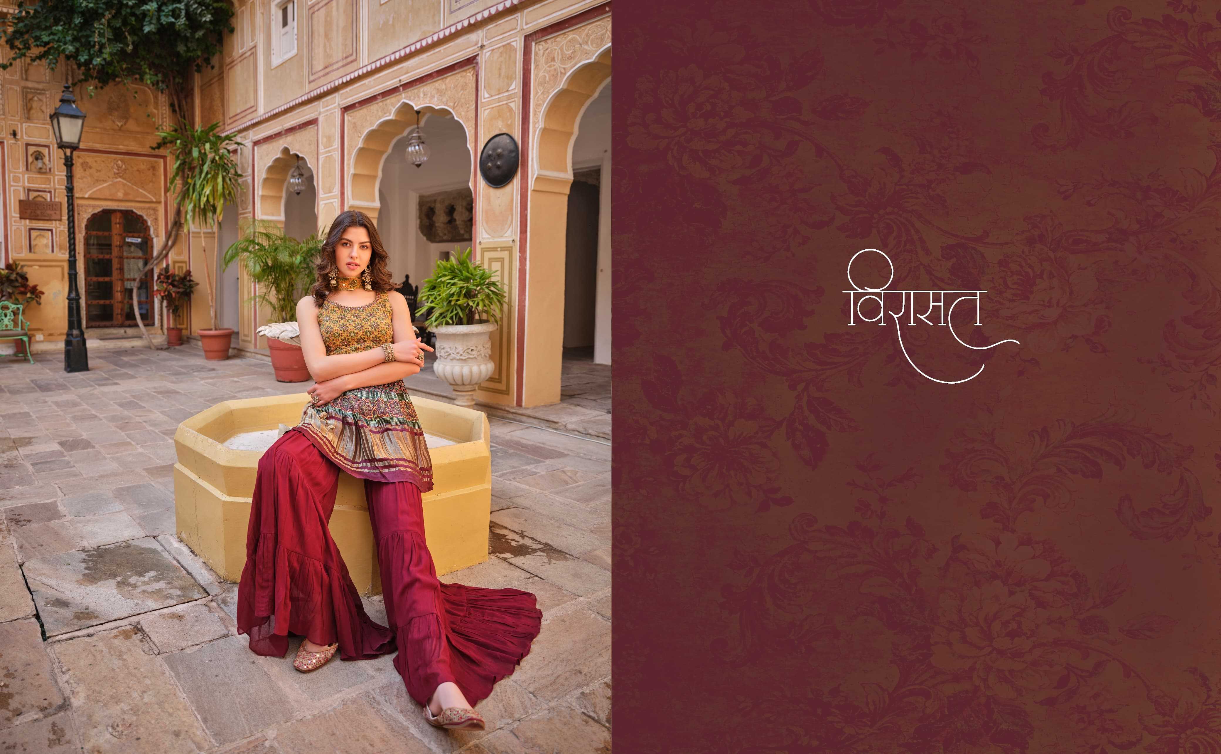 🤝We have launch our new series VIRASAT For upcoming seasons🤝 NOOR New Printed Top Sharara dupatta Fabric Details :- -:Rate:- |