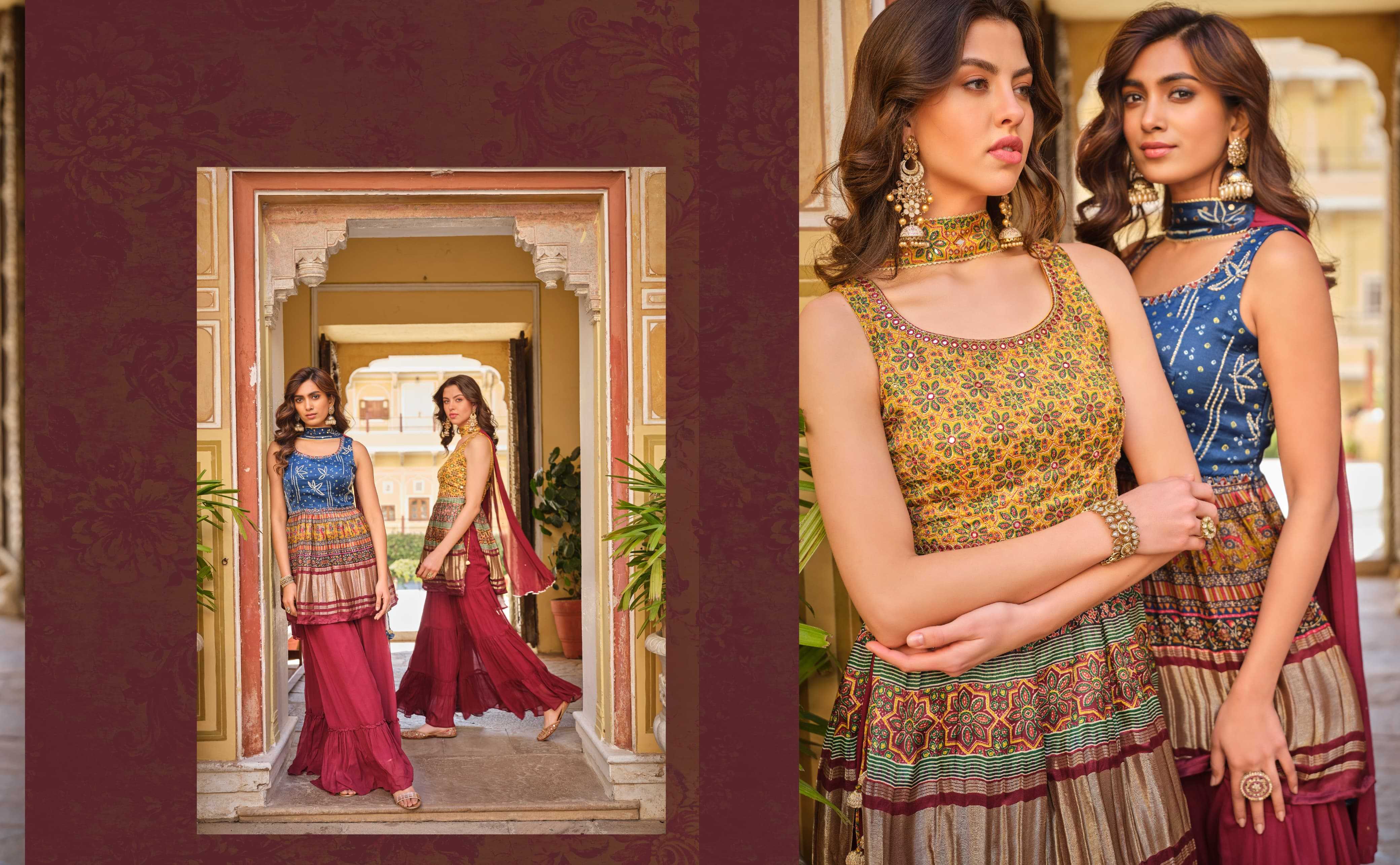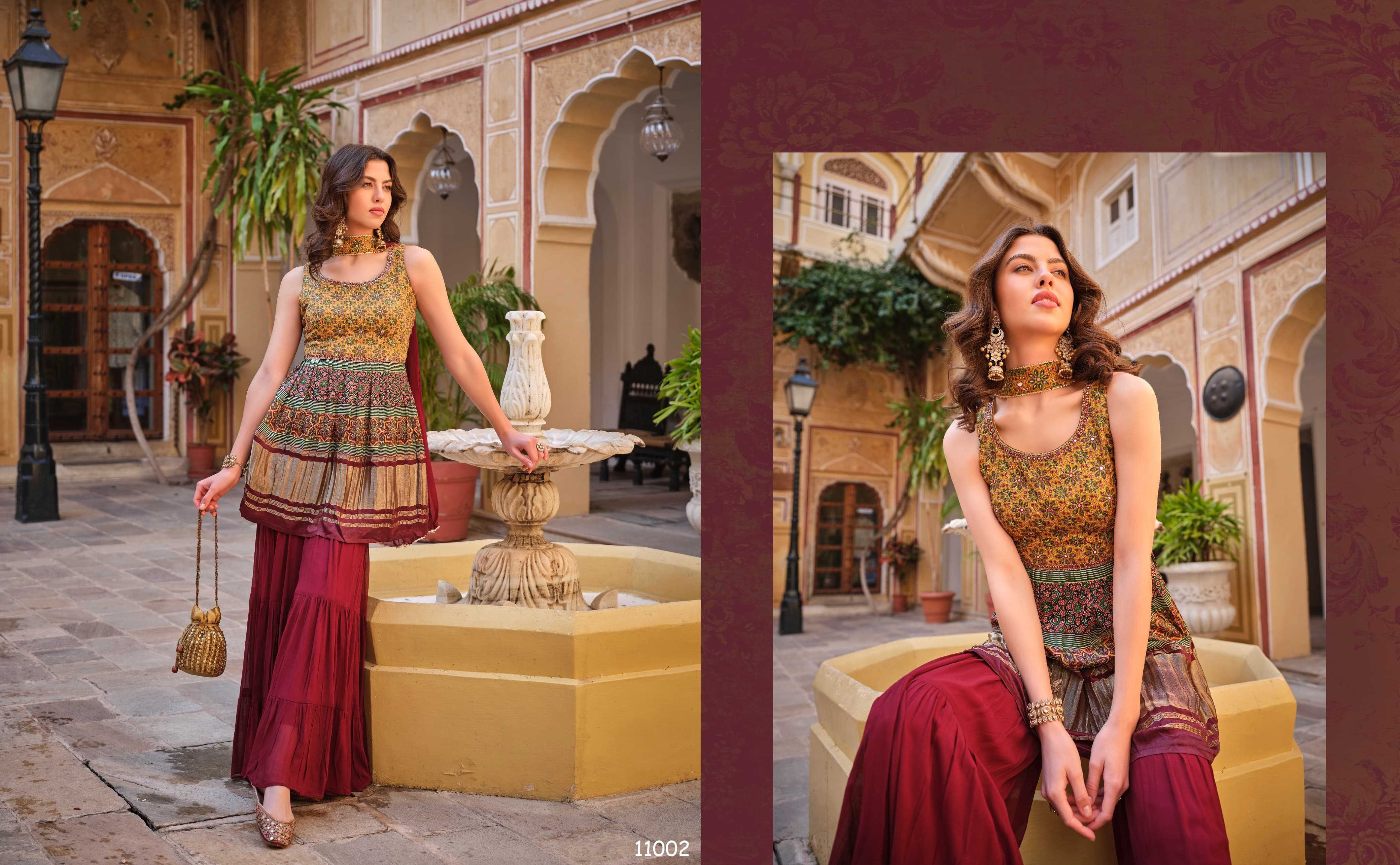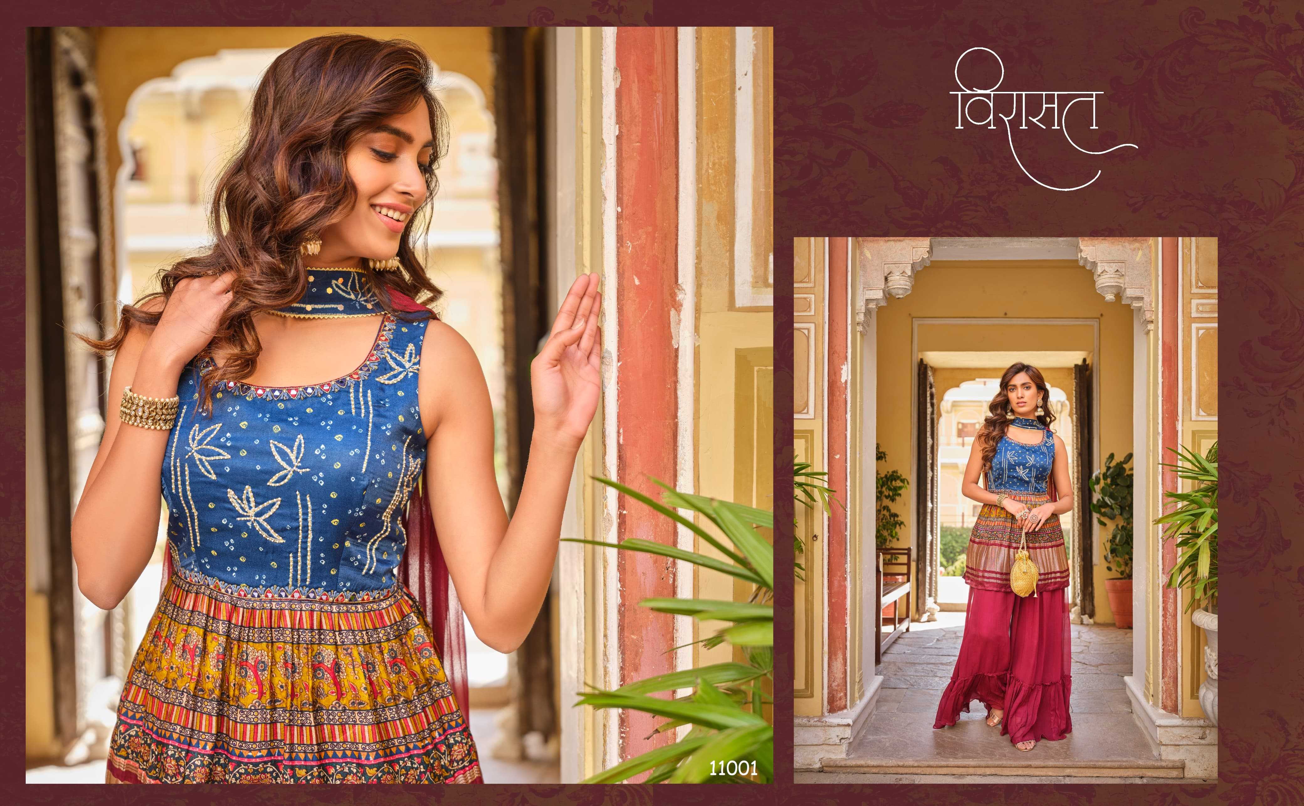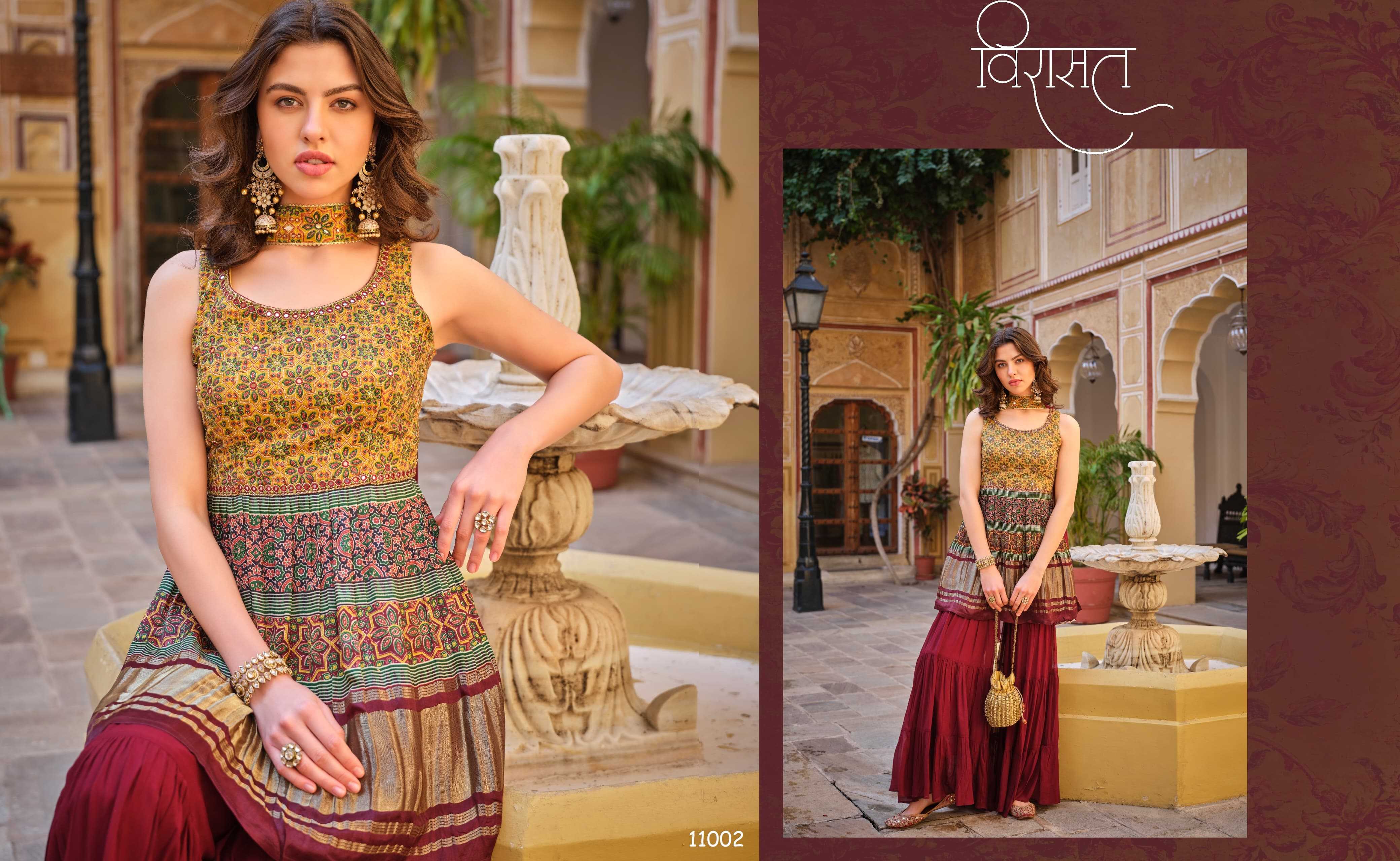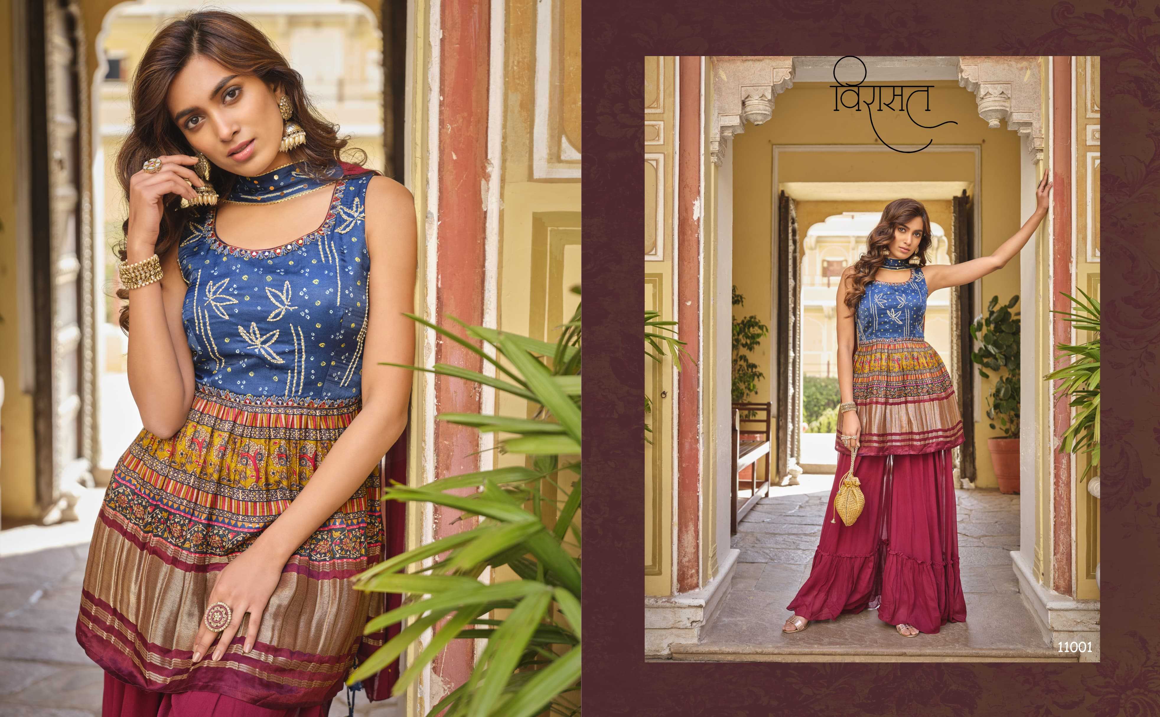 🤝We have launch our new series VIRASAT For upcoming seasons🤝 NOOR New Printed Top Sharara dupatta Fabric Details :- -:Rate:- |