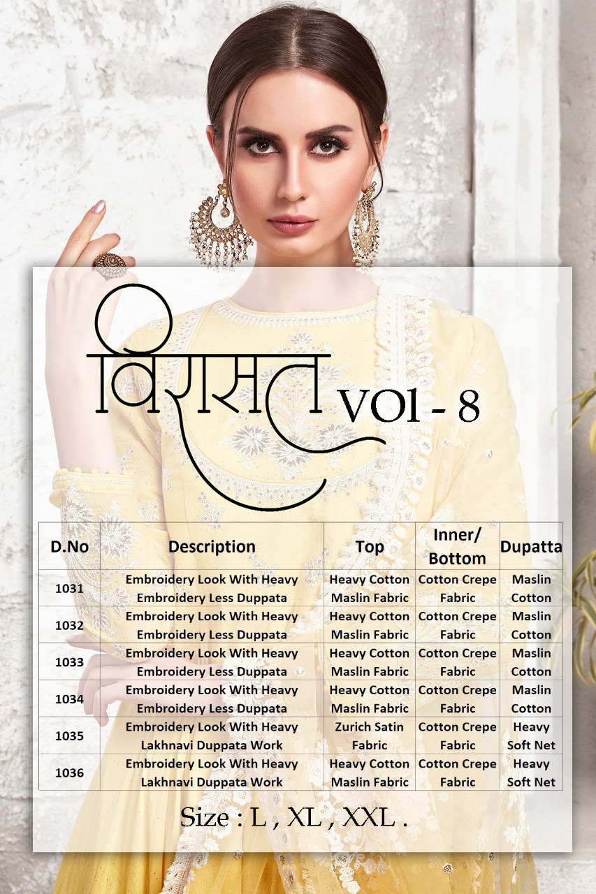 Virasat Vol 8 1031-1036 Series New Designer Gown Exclusive Collection Dealer