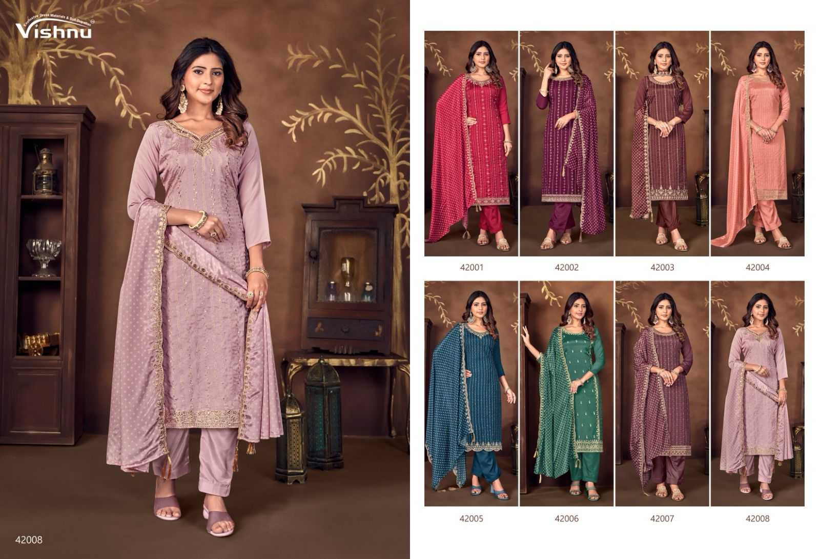 Vishnu Presents Latest Collection Launched on 29-02-2024. Presenting Beautiful collection of 8 PCS with Unstitched .