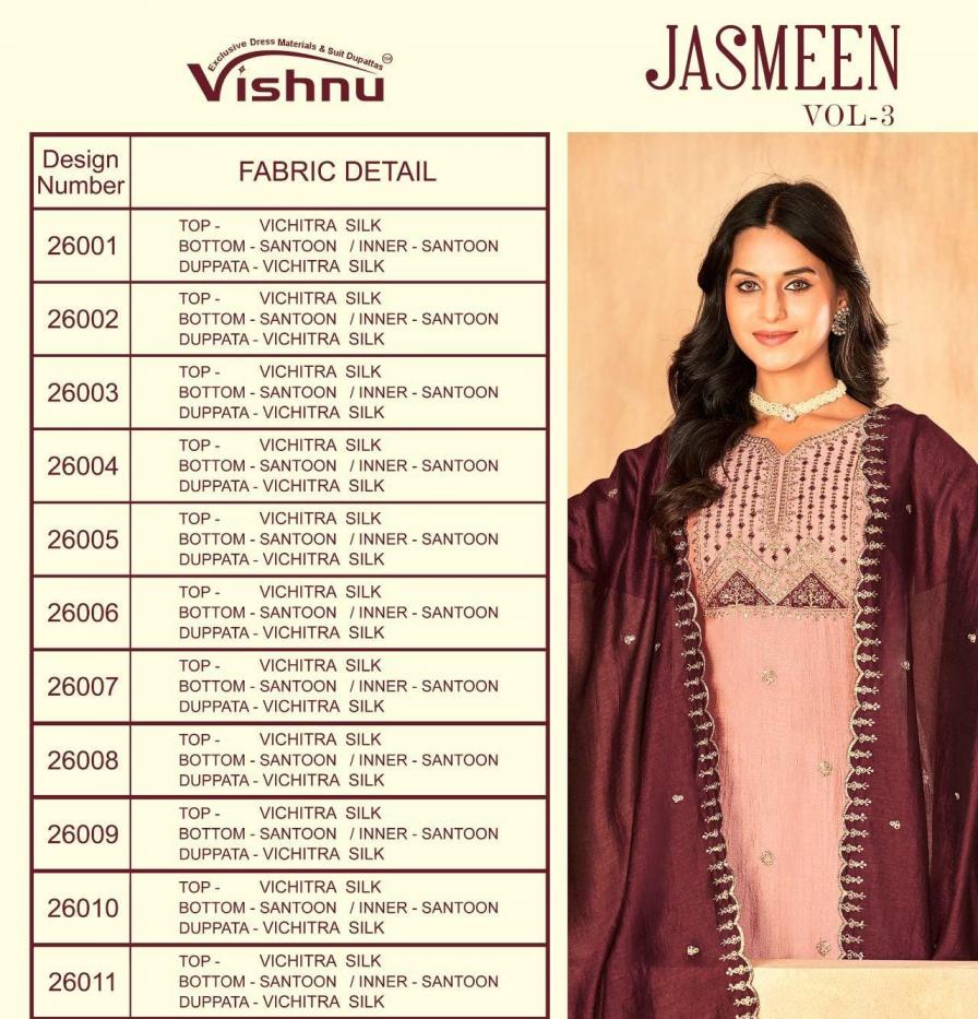 vishnu jasmeen vol 3 readymade stylish vichitra silk suit for womens