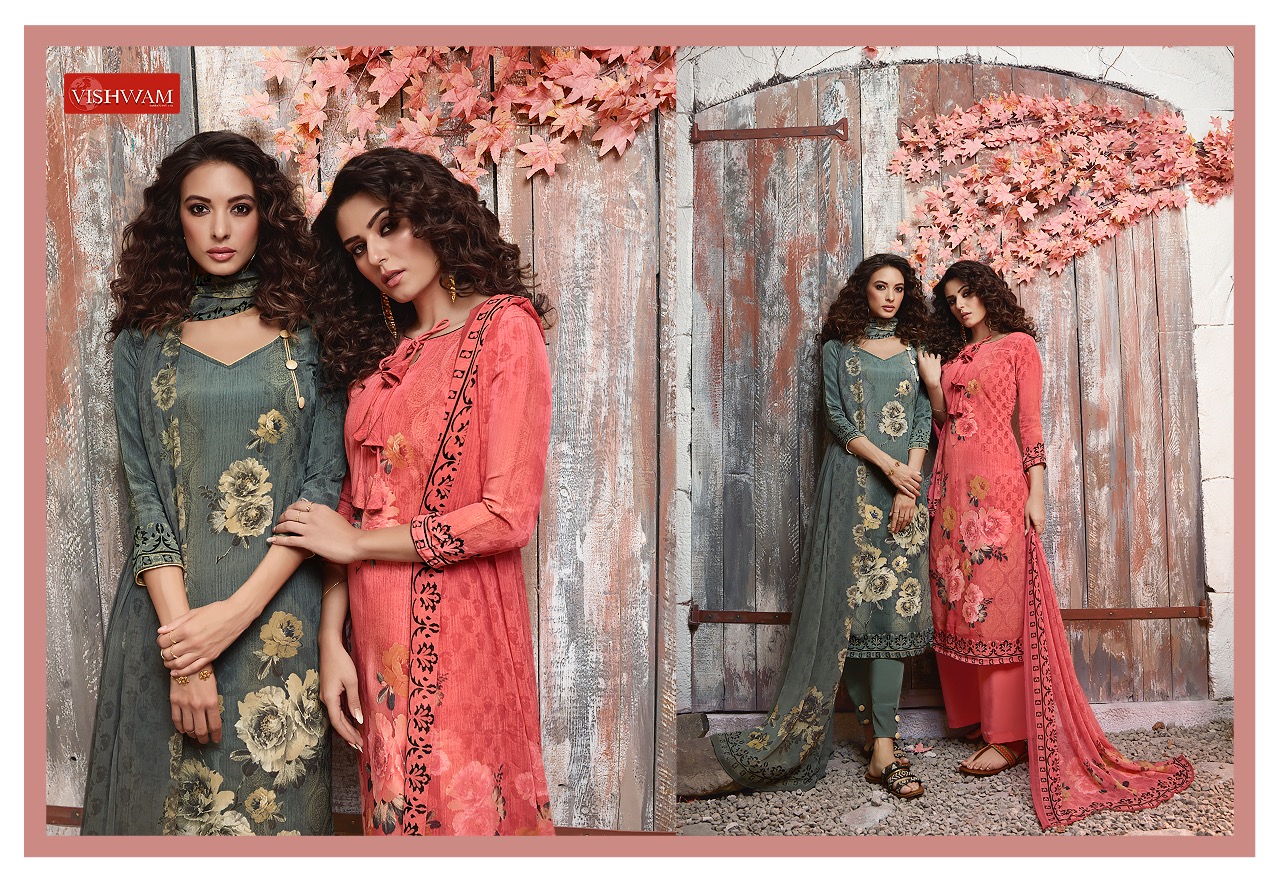Vishwam Fabrics Presents Latest Collection Launched on 01-10-2019. Presenting Beautiful collection of 12 PCS with Unstitched .