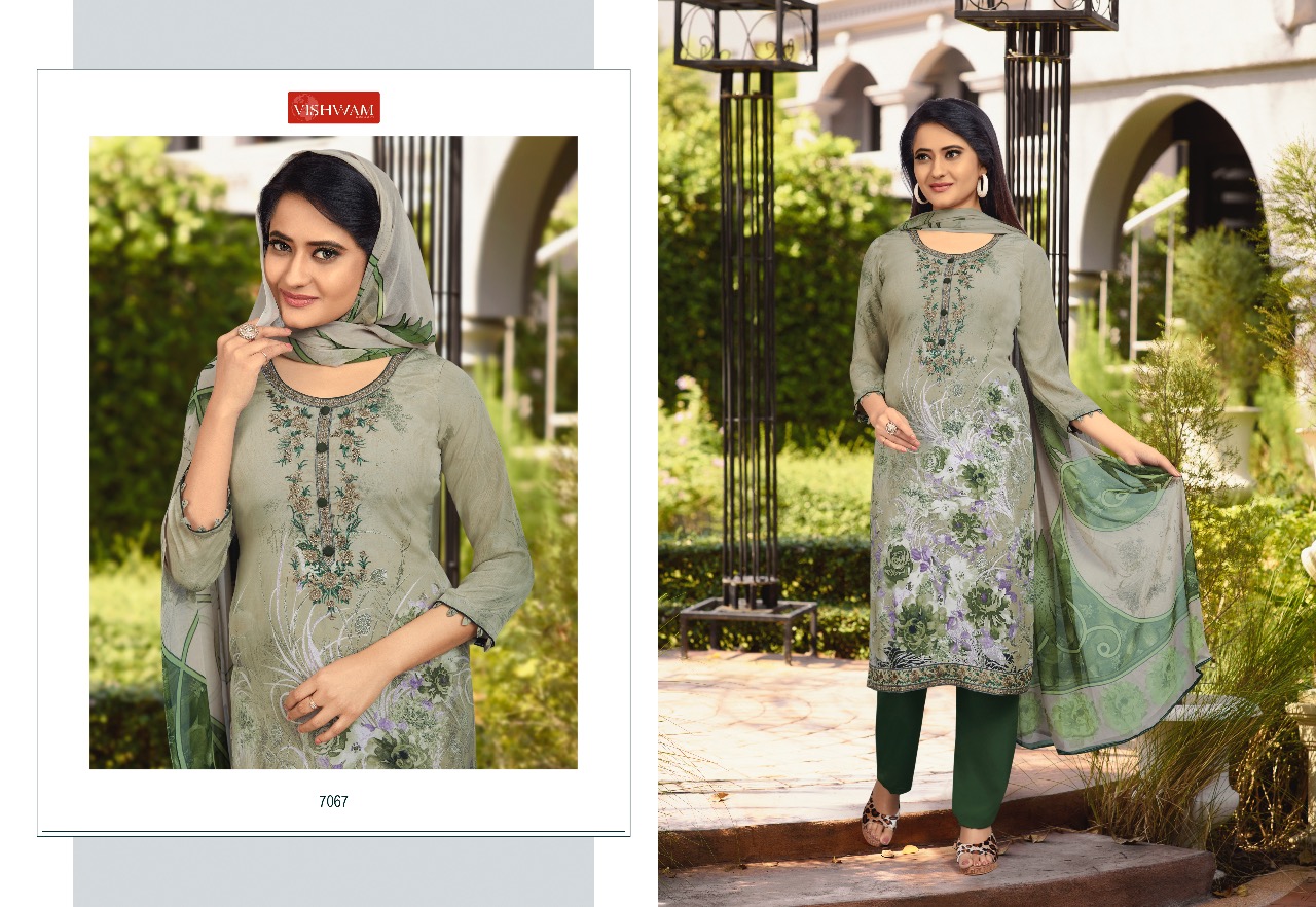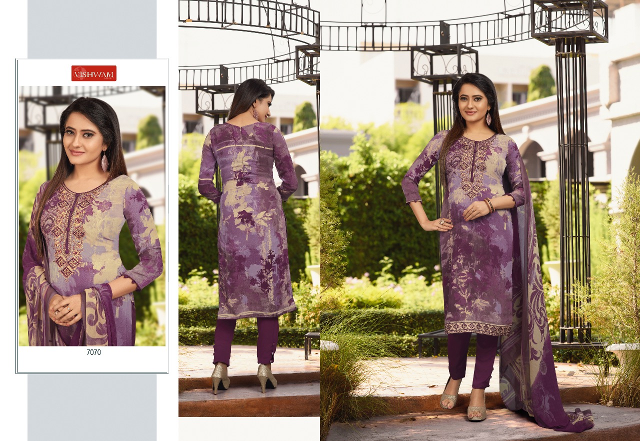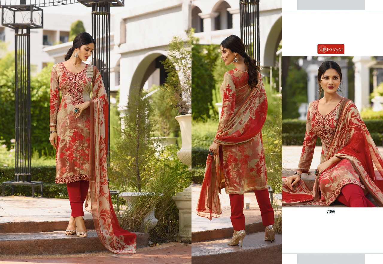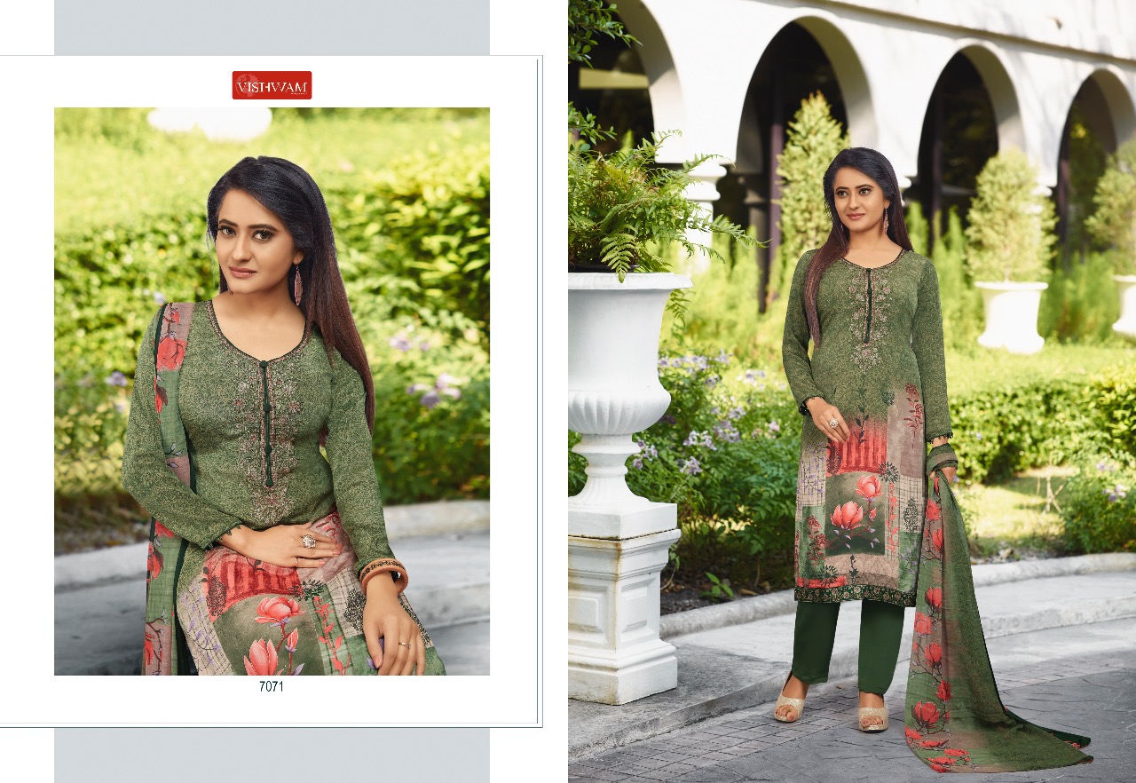 Vishwam Fabrics Presents Latest Collection Launched on 12-12-2019. Presenting Beautiful collection of 12 PCS with Unstitched .