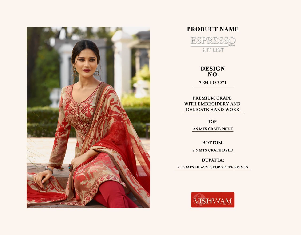 Vishwam Present Espresso Vol 4 Premium Crape Designer Salwar Suit Wholesaler