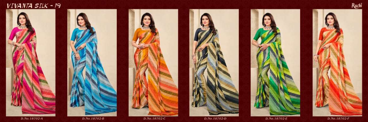 vivanta silk vol 19 by ruchi crape silk printed sarees