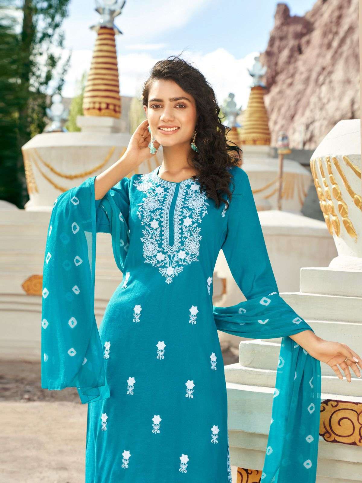 Wanna®️ Product 🎀Launch New Super Fancy Pure quality of Rayon Slub Kurti With Pant & Dupatta Catalogue 🎀 📕Catalogue name :" Aashvi👌🏻" 💵Rate : 555/- only 💵 👗Designs : 07 ✂Sizes : L TO XXL 👘Fabric Details : Top - Pure & Finest Quality of Rayon Slub Heavy Quality WITH SOBER EMBROIDERY WORK Pant - Pure Quality of Rayon Slub With finest stitching levels ⏺️ Dupatta - Chiffon Dupatta with Fancu Bandhani Dyeing Prints with fast Prints quality ⏺️ Best 3 pcs collection in The Range |