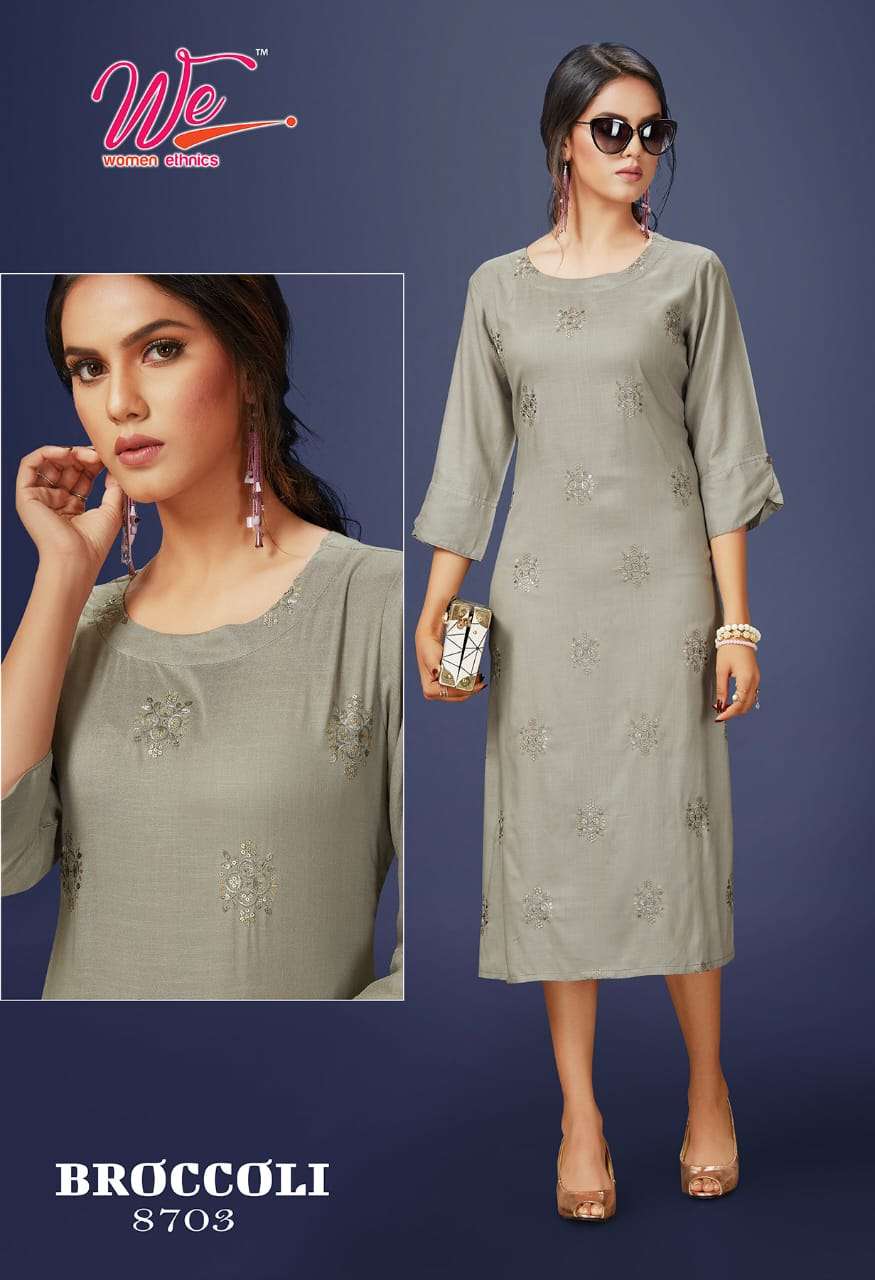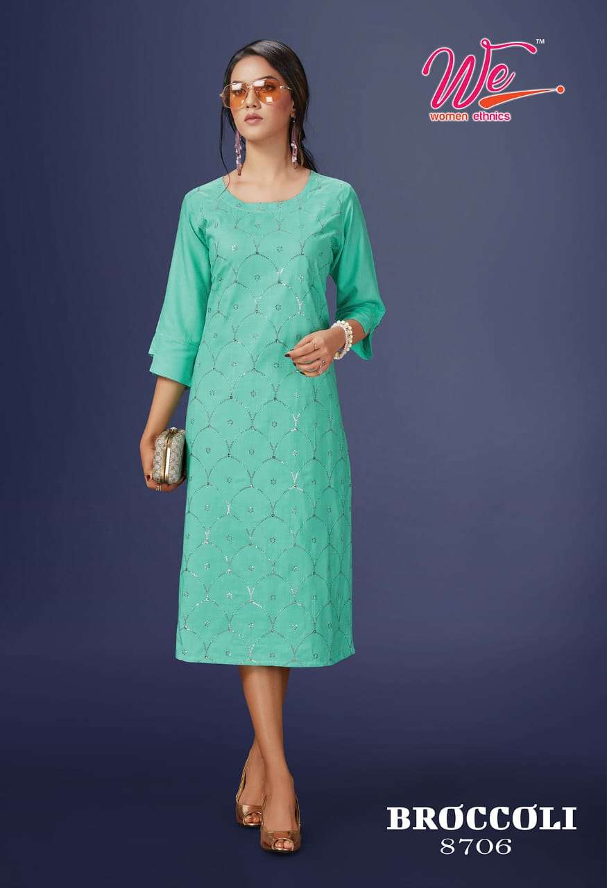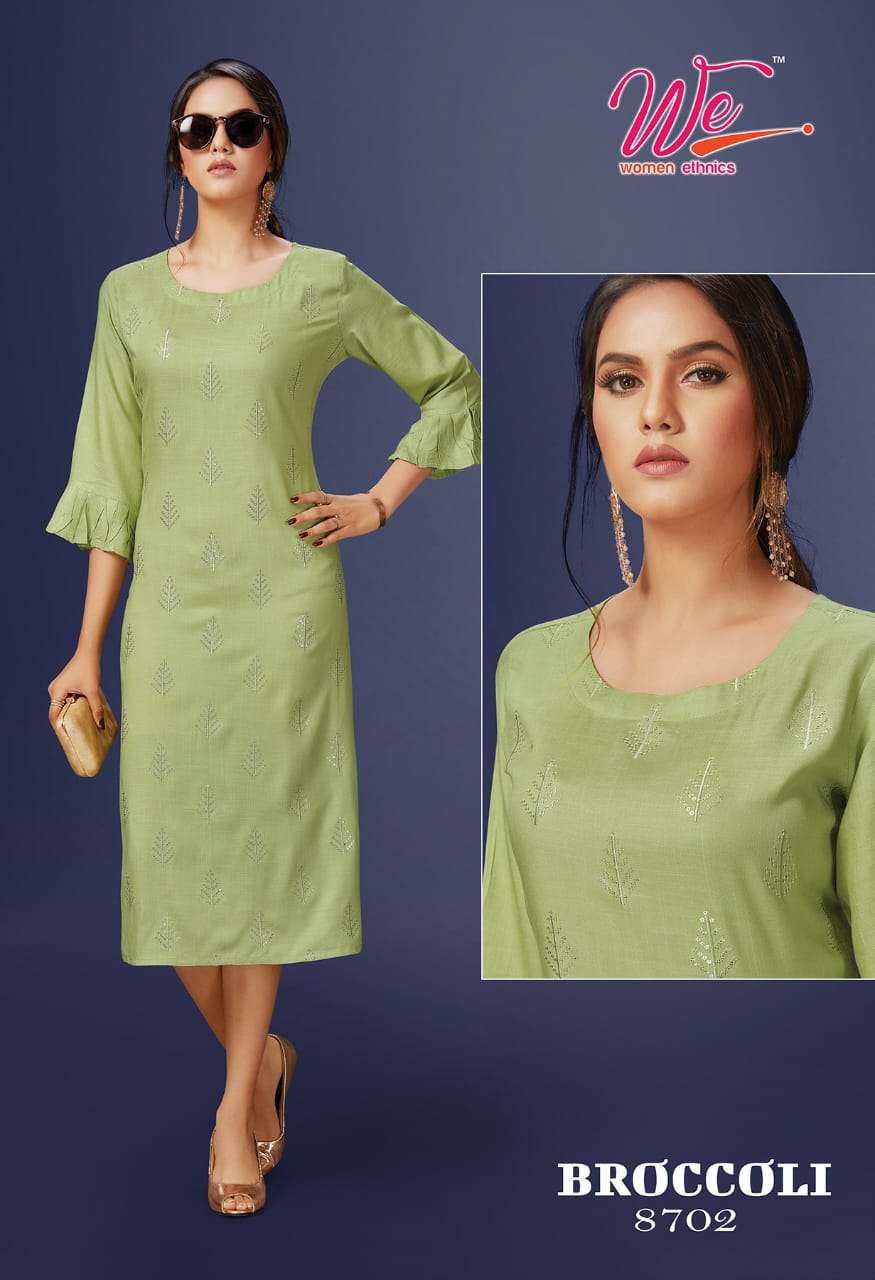 | Other Details | WE    women ethnics   A Brand OF KURTI'S  Name : BROCCOLI Fabric : Solid Reyon Diamond Designs : 6 Size :  L , XL , XXL . |
