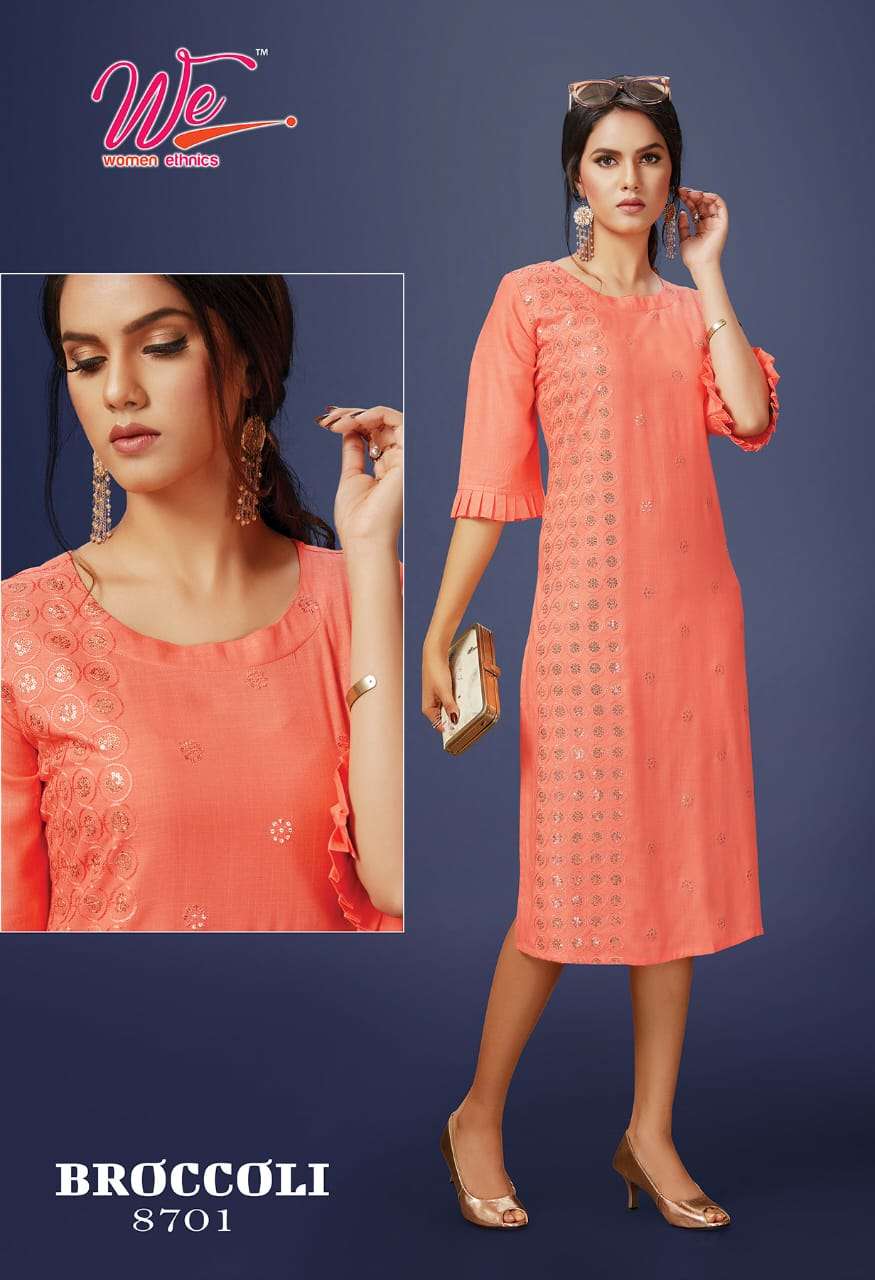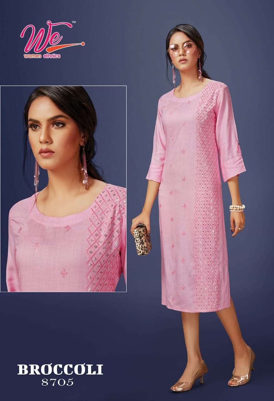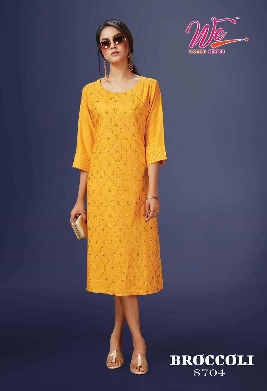 | Other Details | WE    women ethnics   A Brand OF KURTI'S  Name : BROCCOLI Fabric : Solid Reyon Diamond Designs : 6 Size :  L , XL , XXL . |