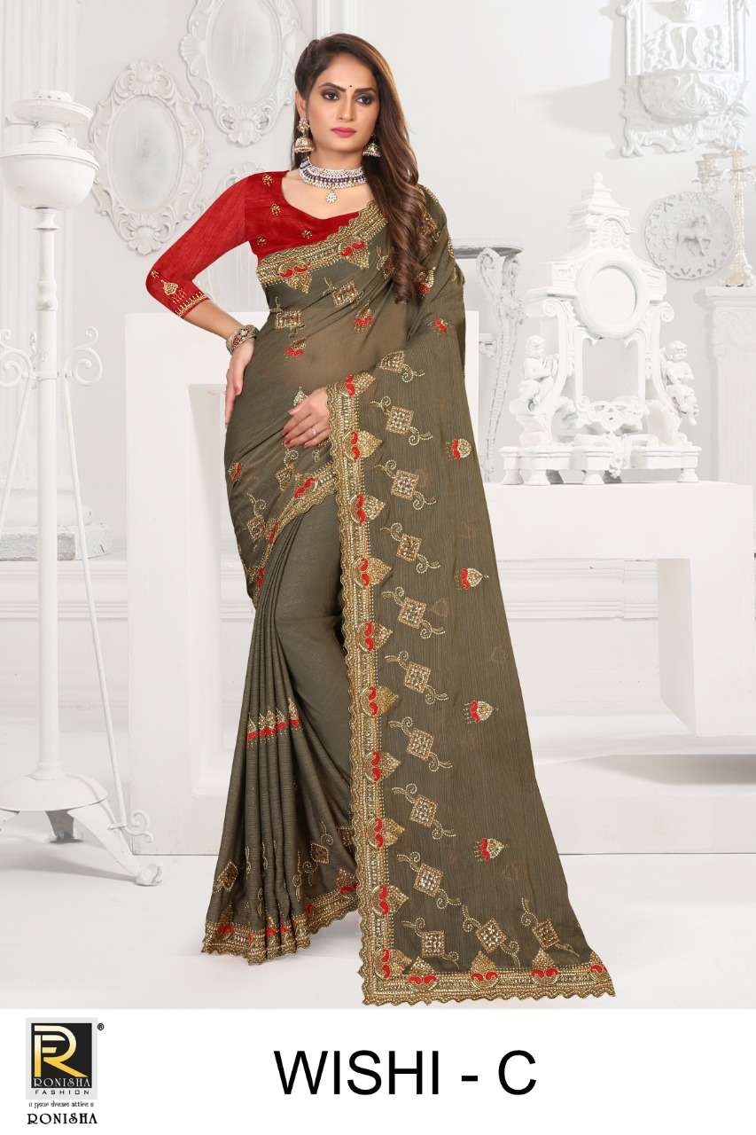 WISHI BY RANJNA SAREES FABRIC ZOMATO EMBROIDERY WORK HEAVY DIAMOND SAREES COLLECTION