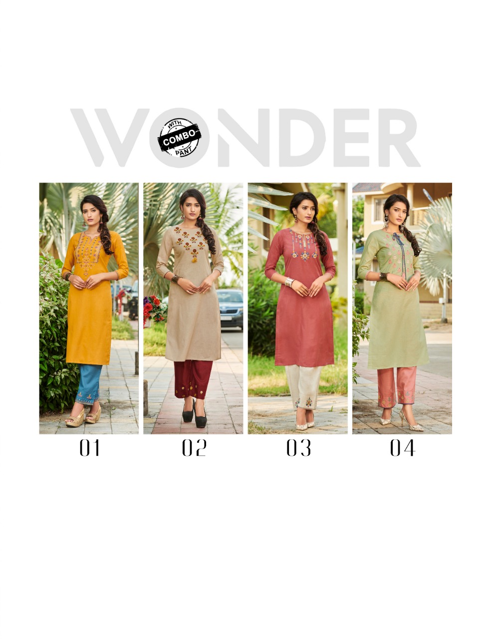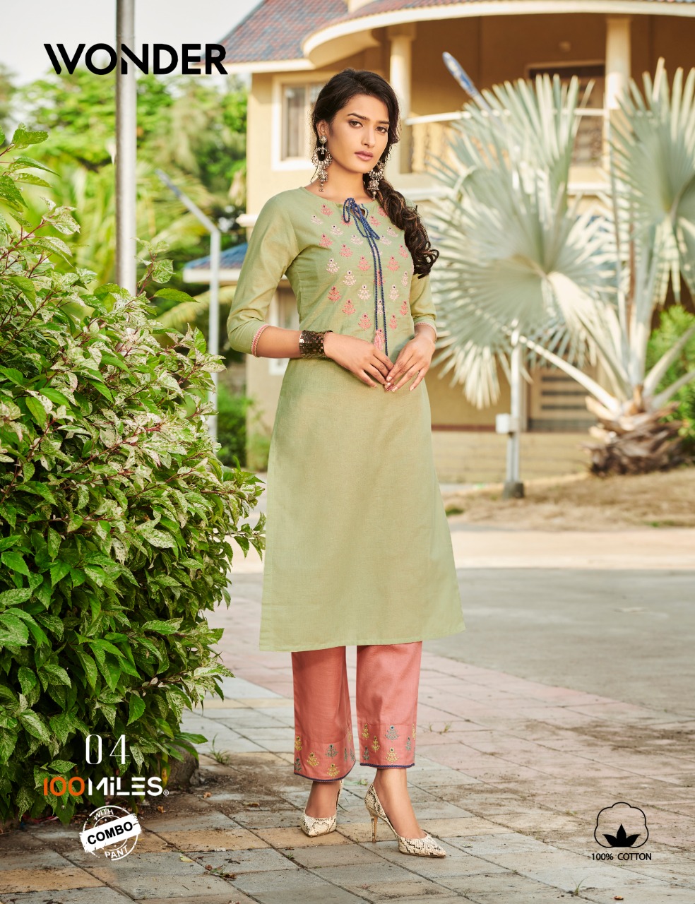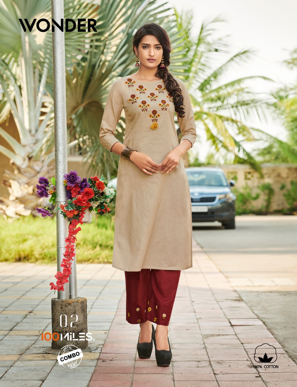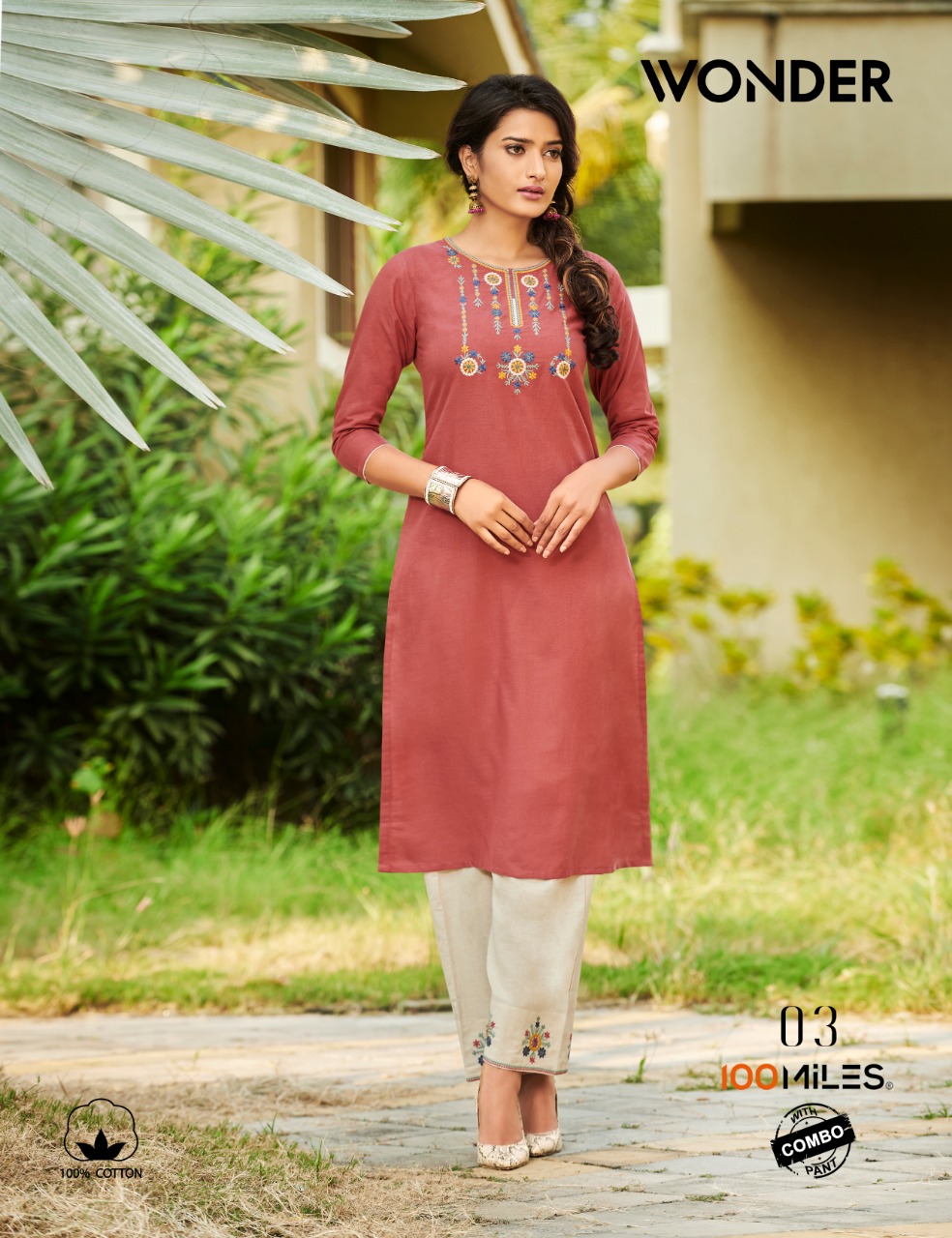 Wonder By 100 Miles Cotton Embroidery Work Kurti With Combo Pant Seller