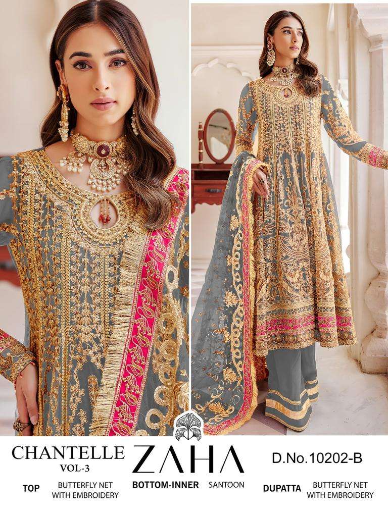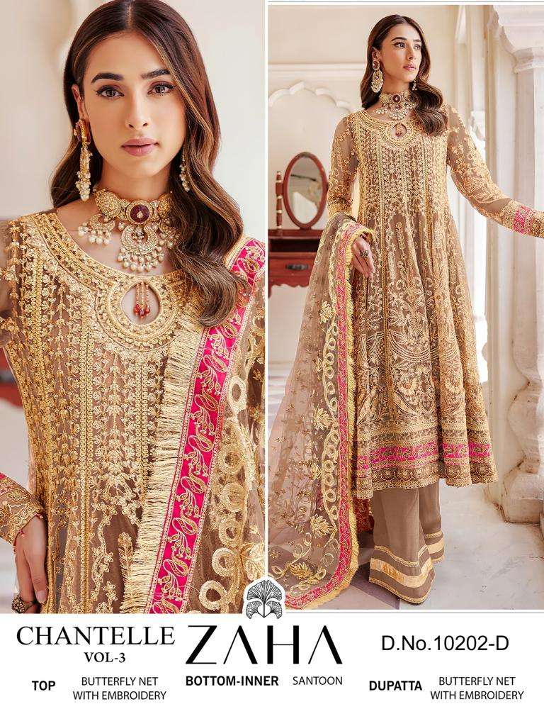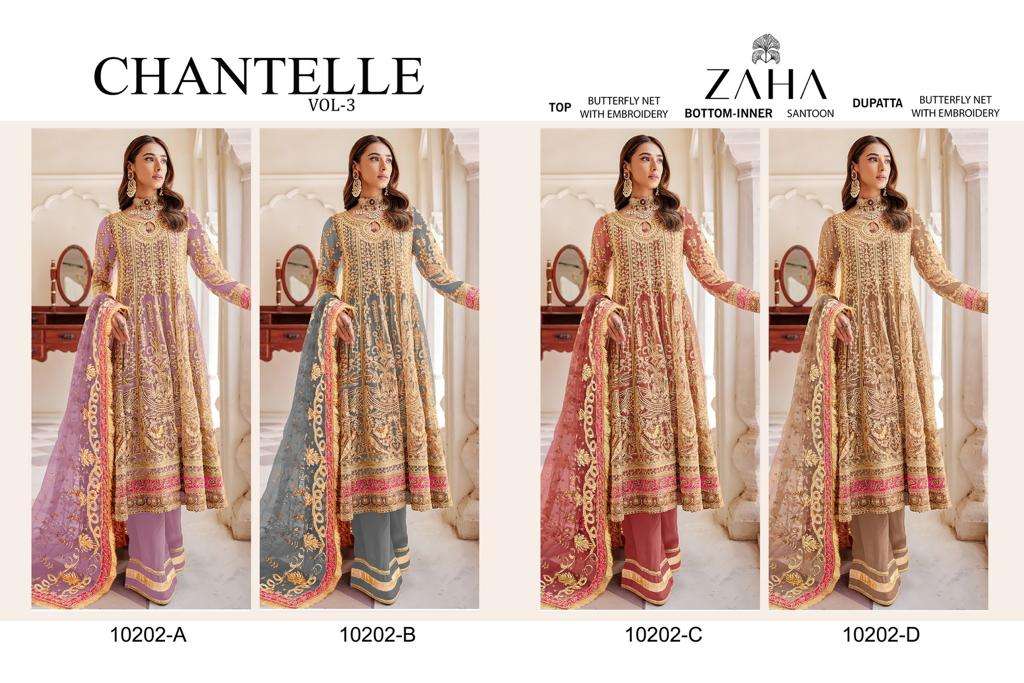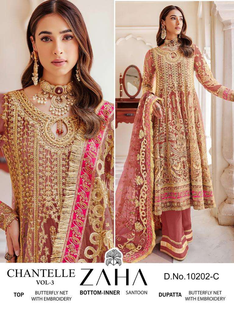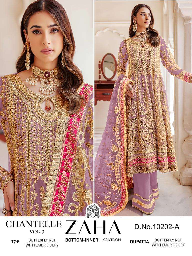zaha chantelle vol 3 10202 colours designer work pakistani salwar suit collection
